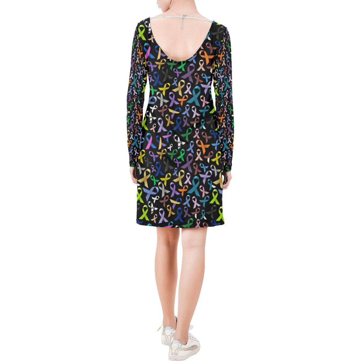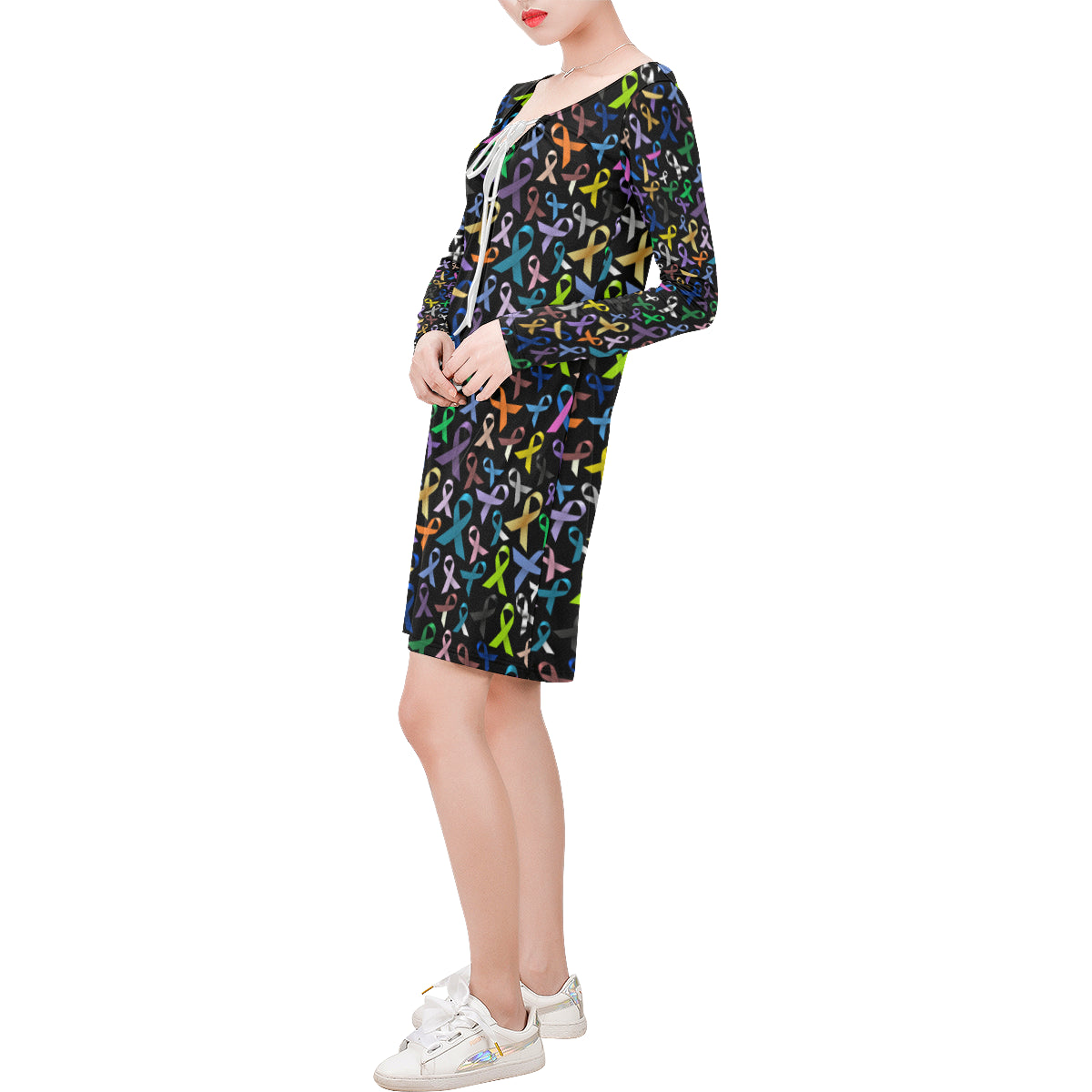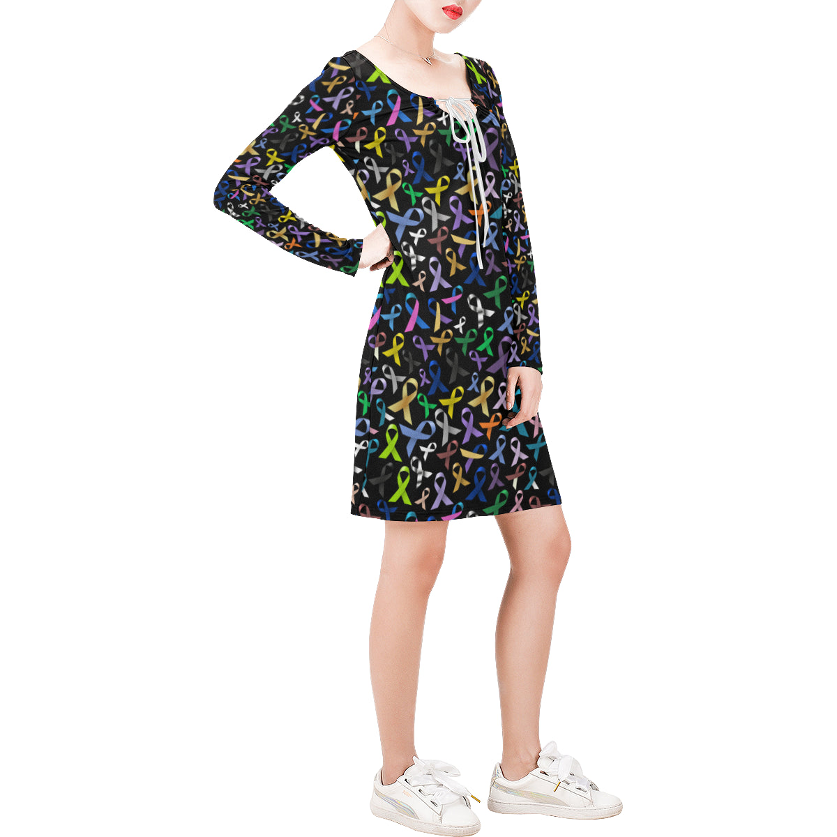 Breast Cancer Awareness Colorful Print Long Sleeves Dress