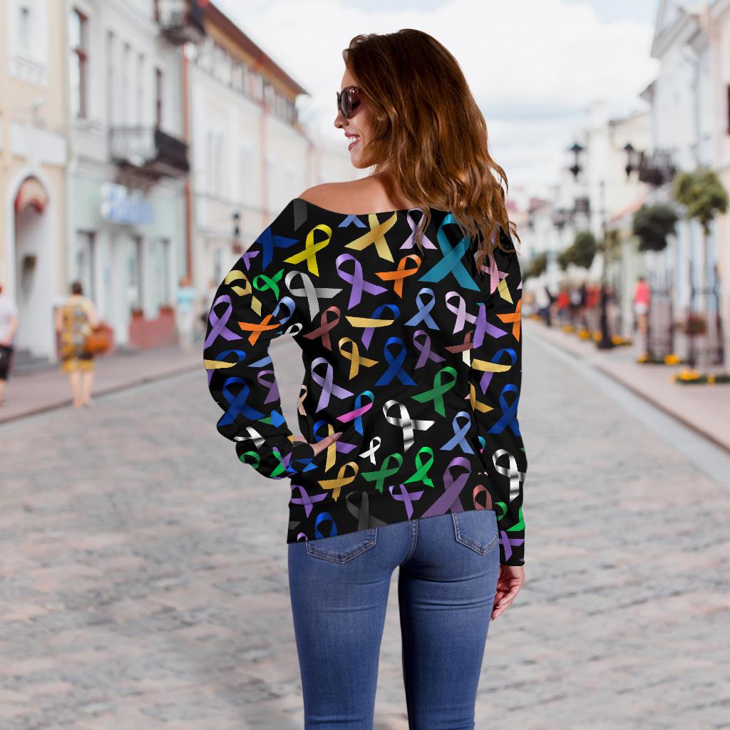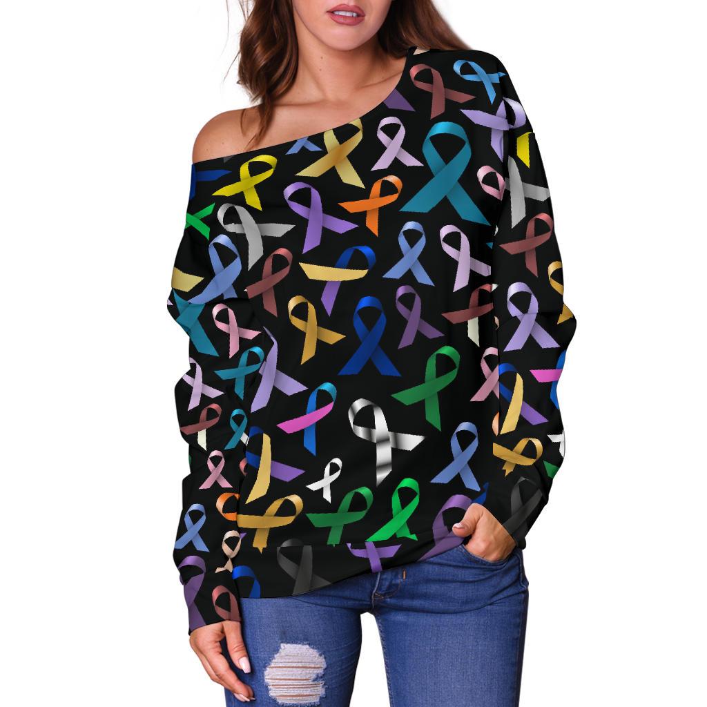 Breast Cancer Awareness Colorful Print Off Shoulder Sweatshirt
