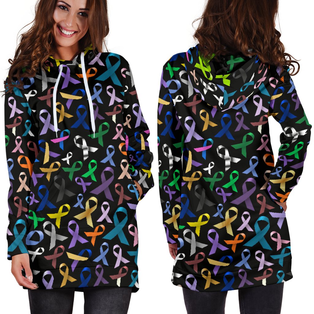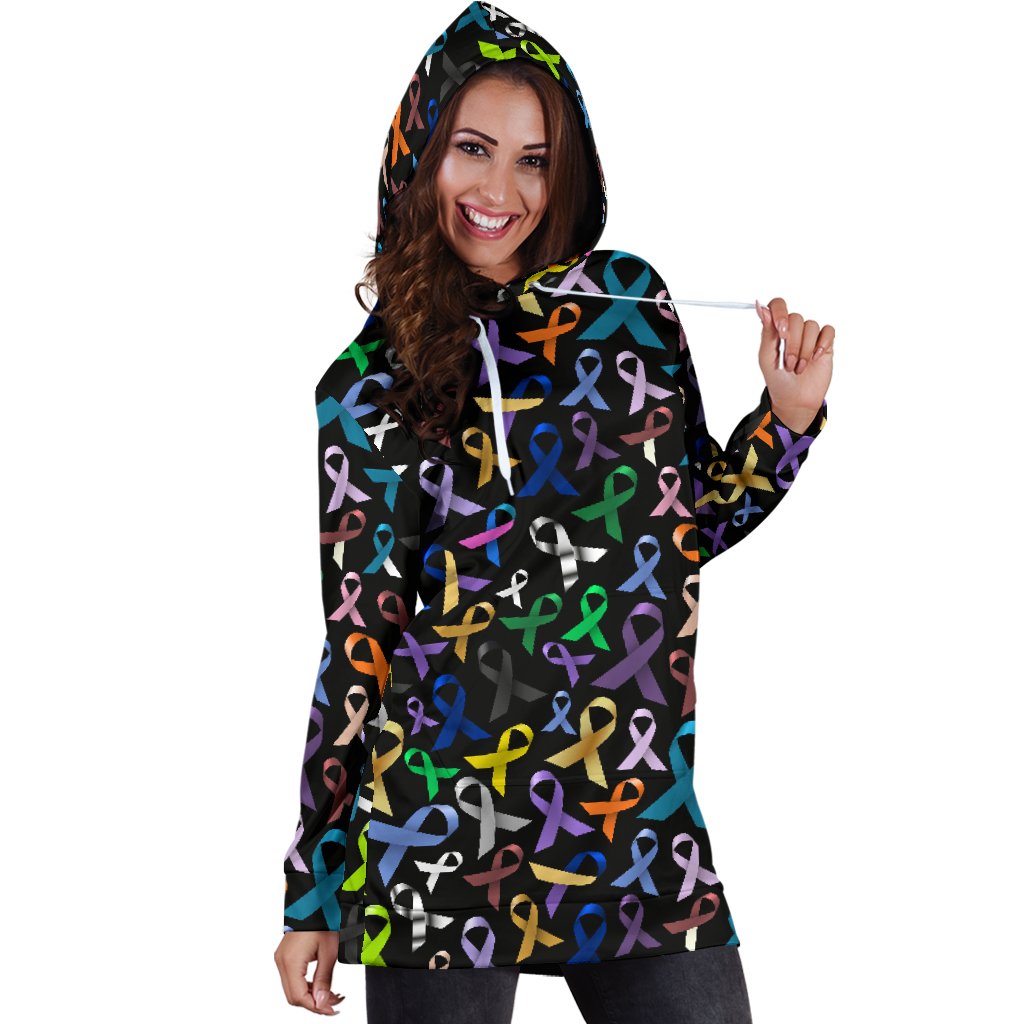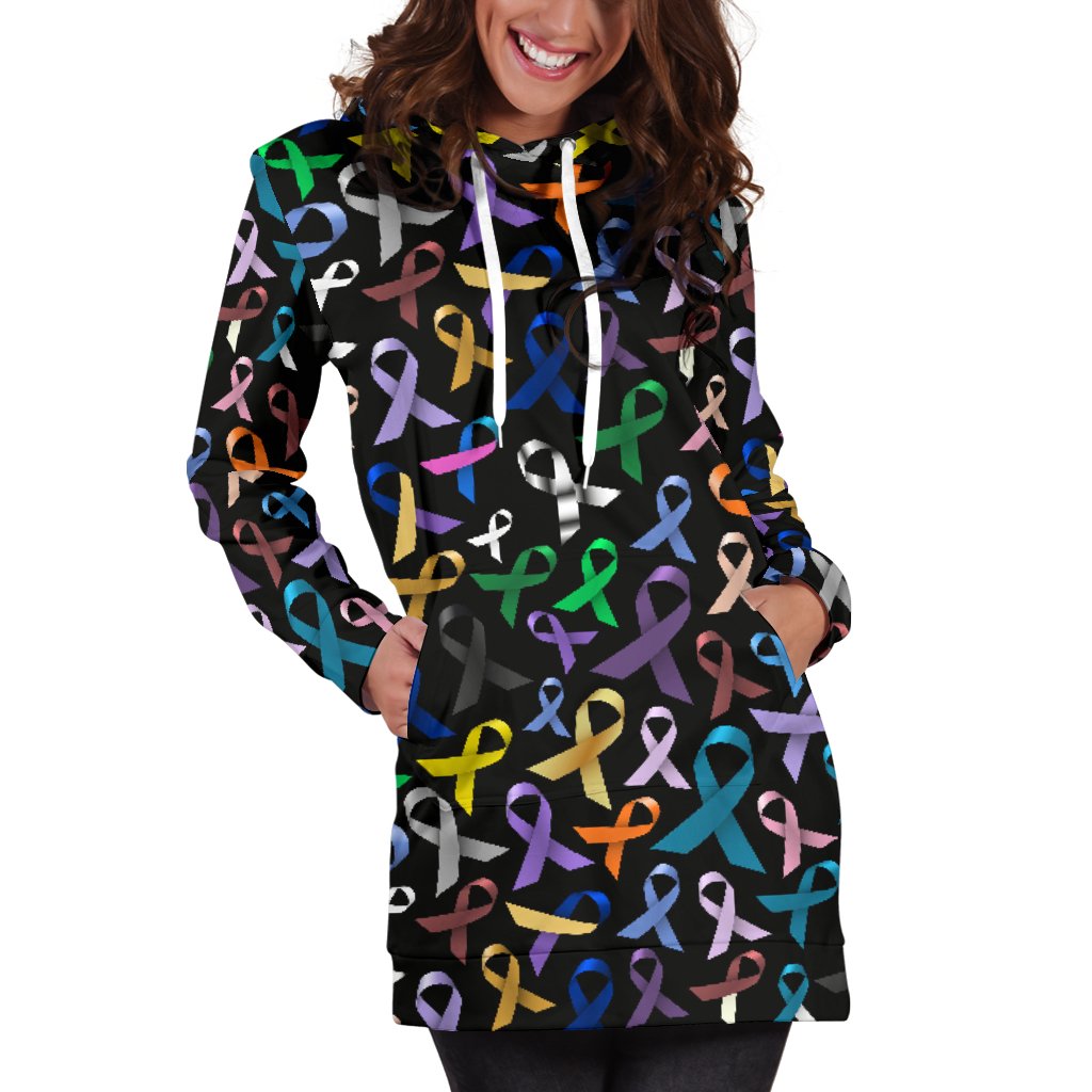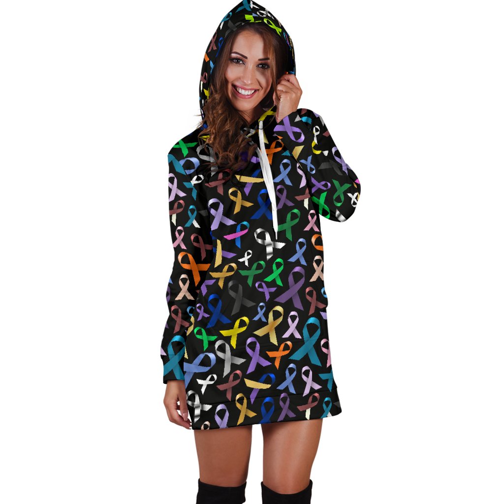 Breast Cancer Awareness Colorful Print Women Hoodie Dress