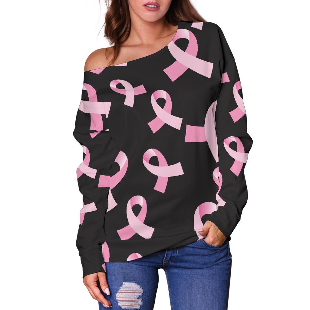 Breast Cancer Awareness Design Off Shoulder Sweatshirt
