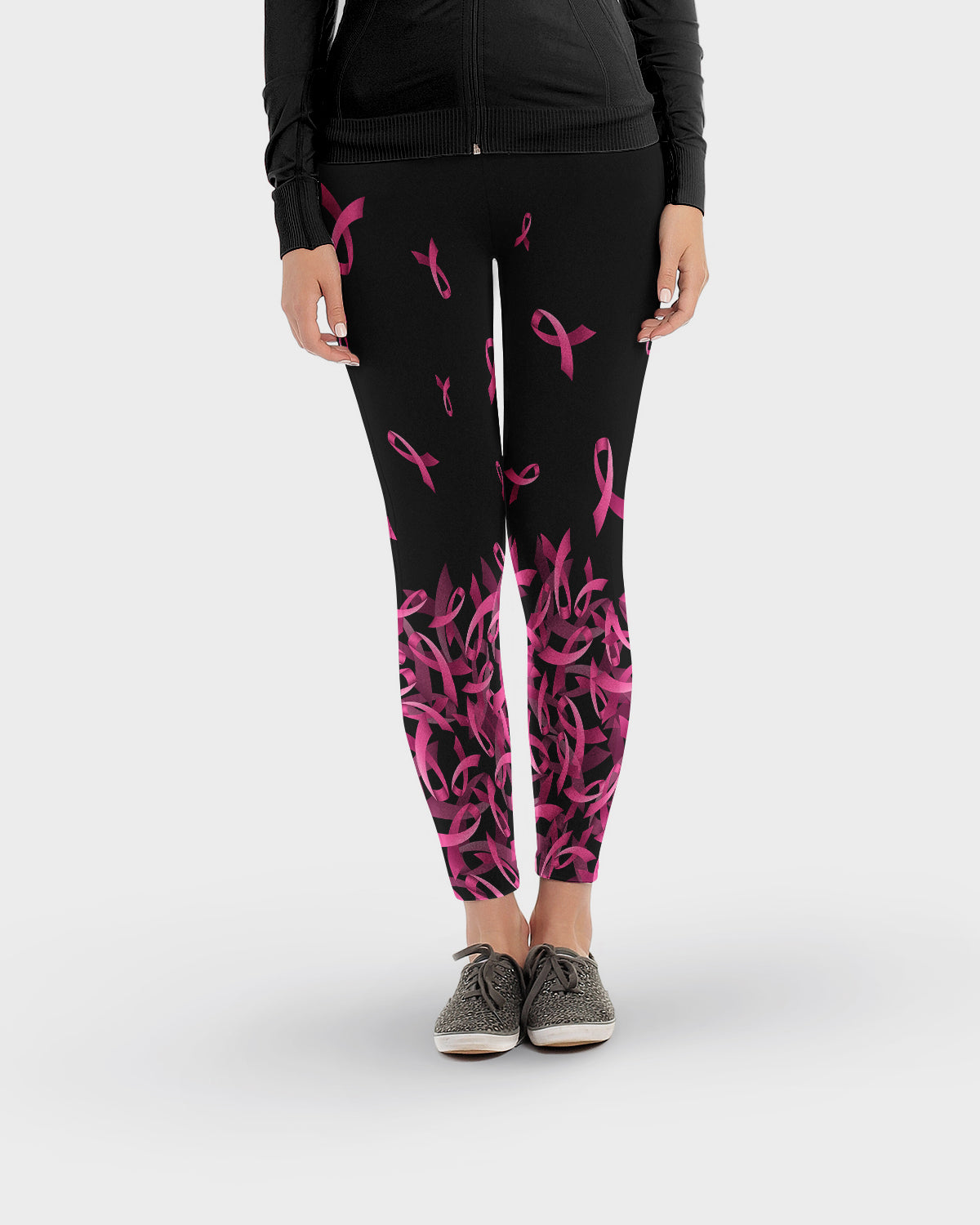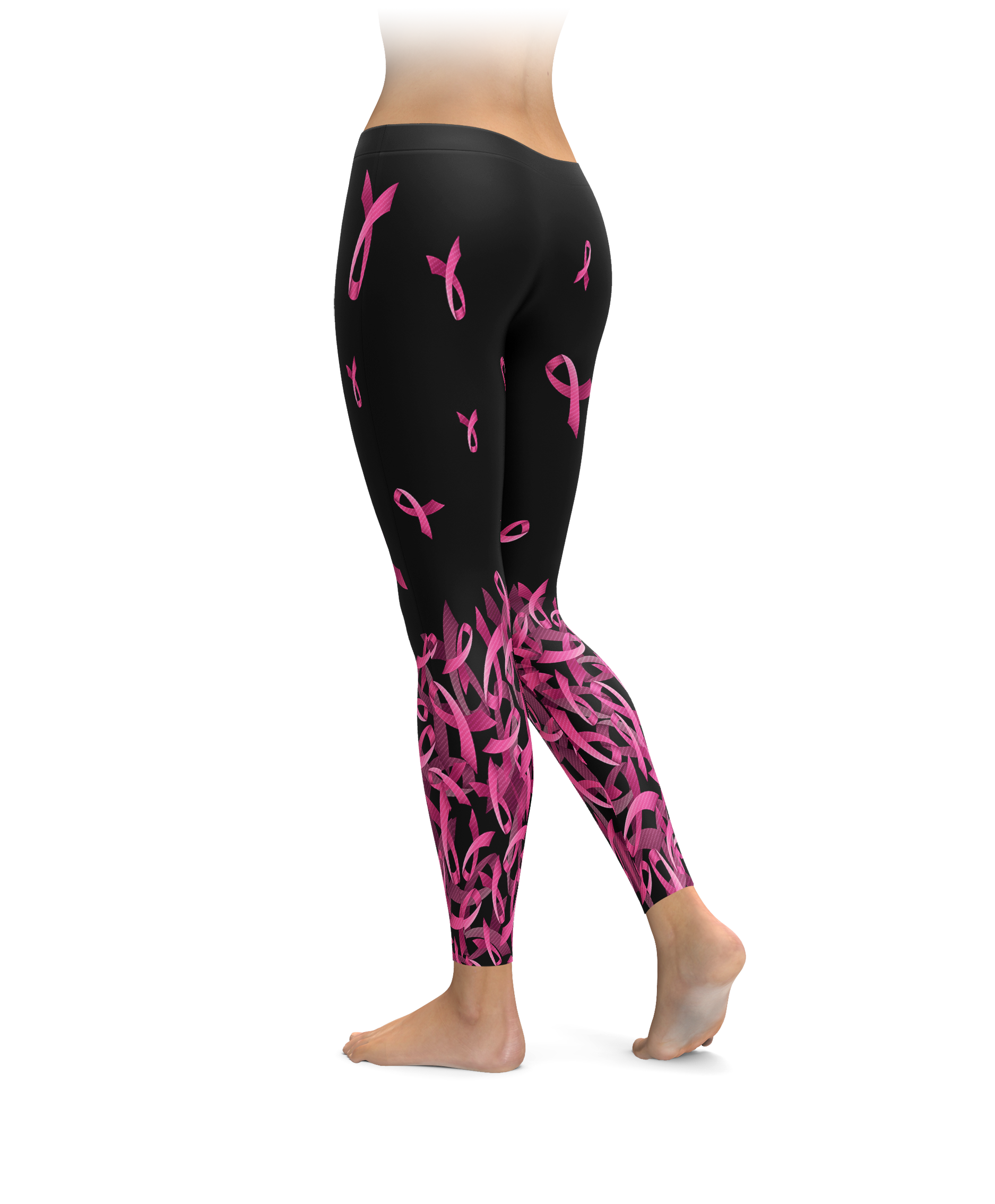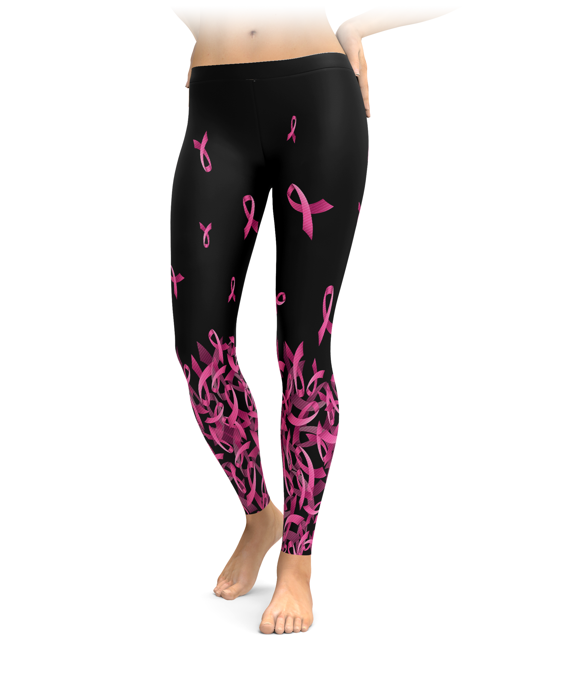 Breast Cancer Awareness Falling Ribbon Leggings