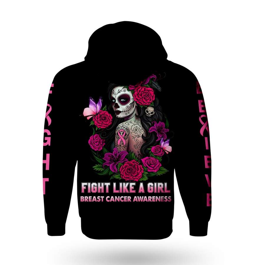 Breast Cancer Awareness Fight Like A Girl Skull Zipper 3D Hoodie