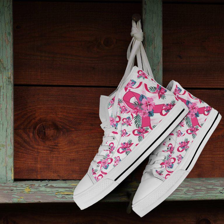 Breast Cancer Awareness Flower Pattern – High Top Shoes