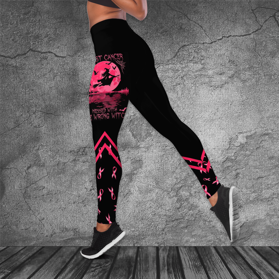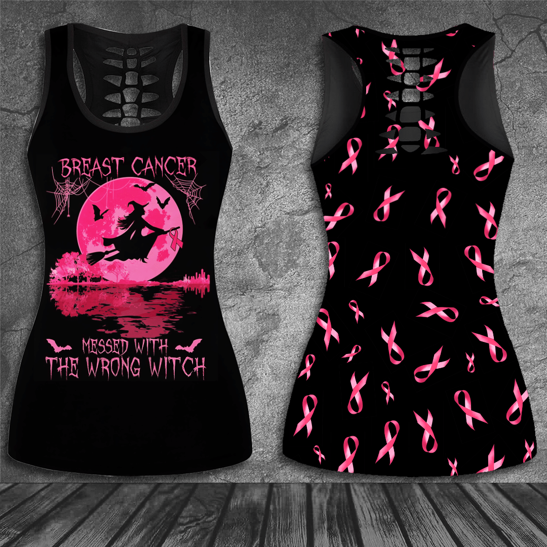 Breast Cancer Awareness ”Halloween” Hollow Tank Top & Leggings Set 240821006.Cta