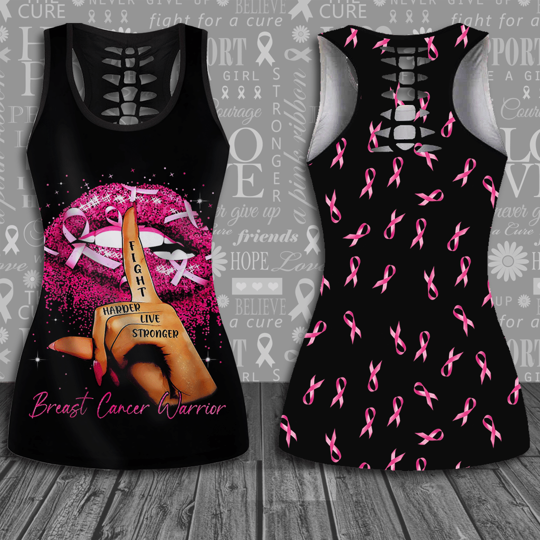 Breast Cancer Awareness Lips Hollow Tank Top & Leggings Set 240821003.Cta