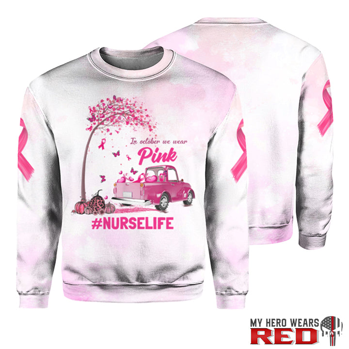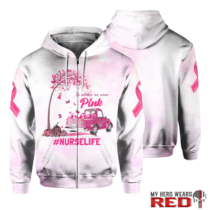 Breast Cancer Awareness Month In October We Wear Pink Nurselife Personalized Text 3D Hoodies Sweater