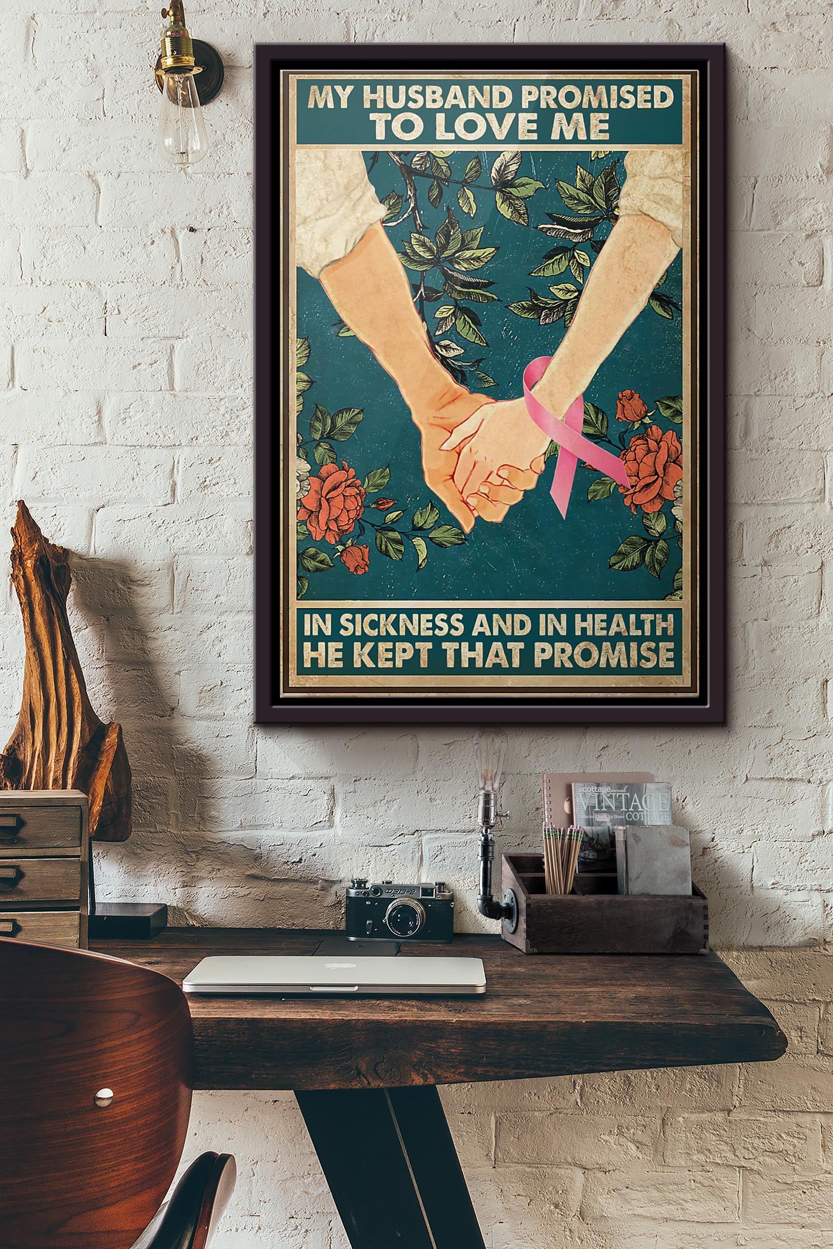 Breast Cancer Awareness My Husband Promised To Love Me In Sickness And In Health He Kept That Promise Poster Framed Matte Canvas
