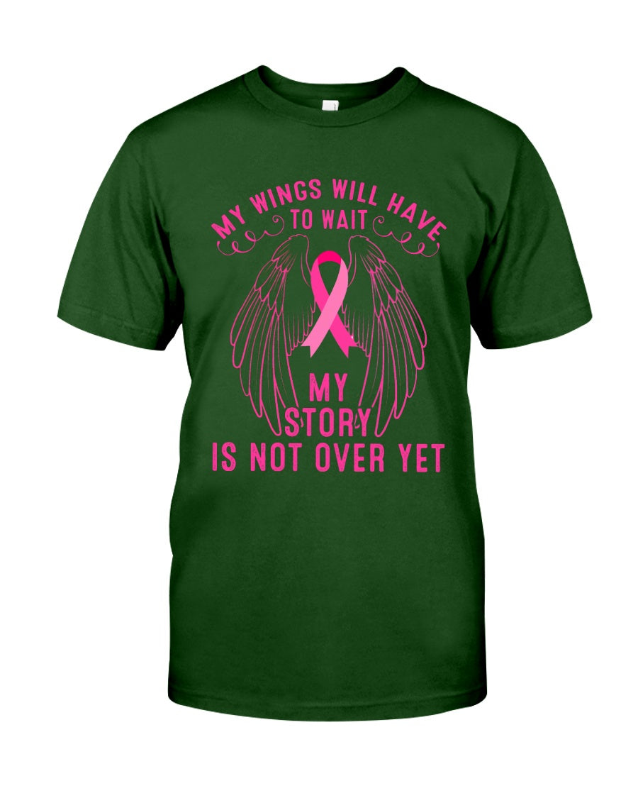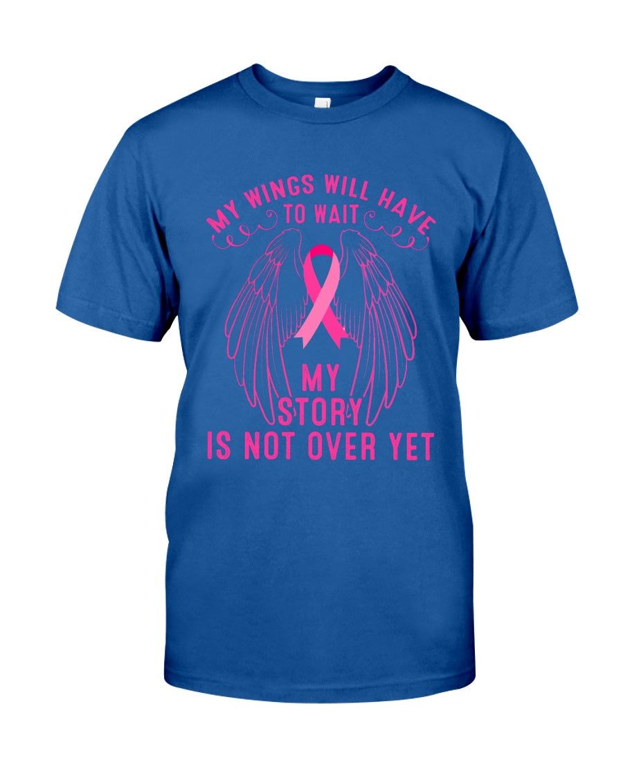 Breast Cancer Awareness My Wings Have To Wait My Story Is Not Over Yet Guys Tee