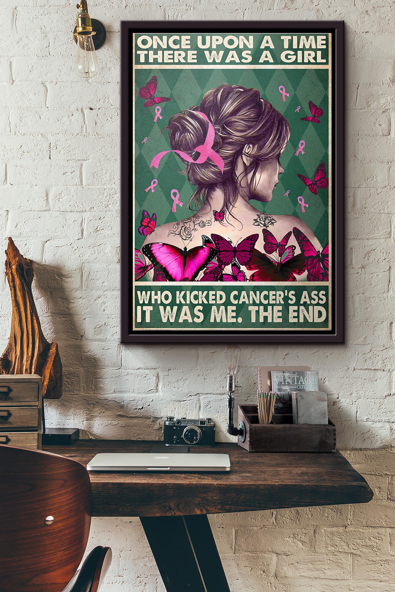 Breast Cancer Awareness Once Upon A Time There Was A Girl Who Kicked Cancers Ass It Was Me The End Poster Framed Matte Canvas
