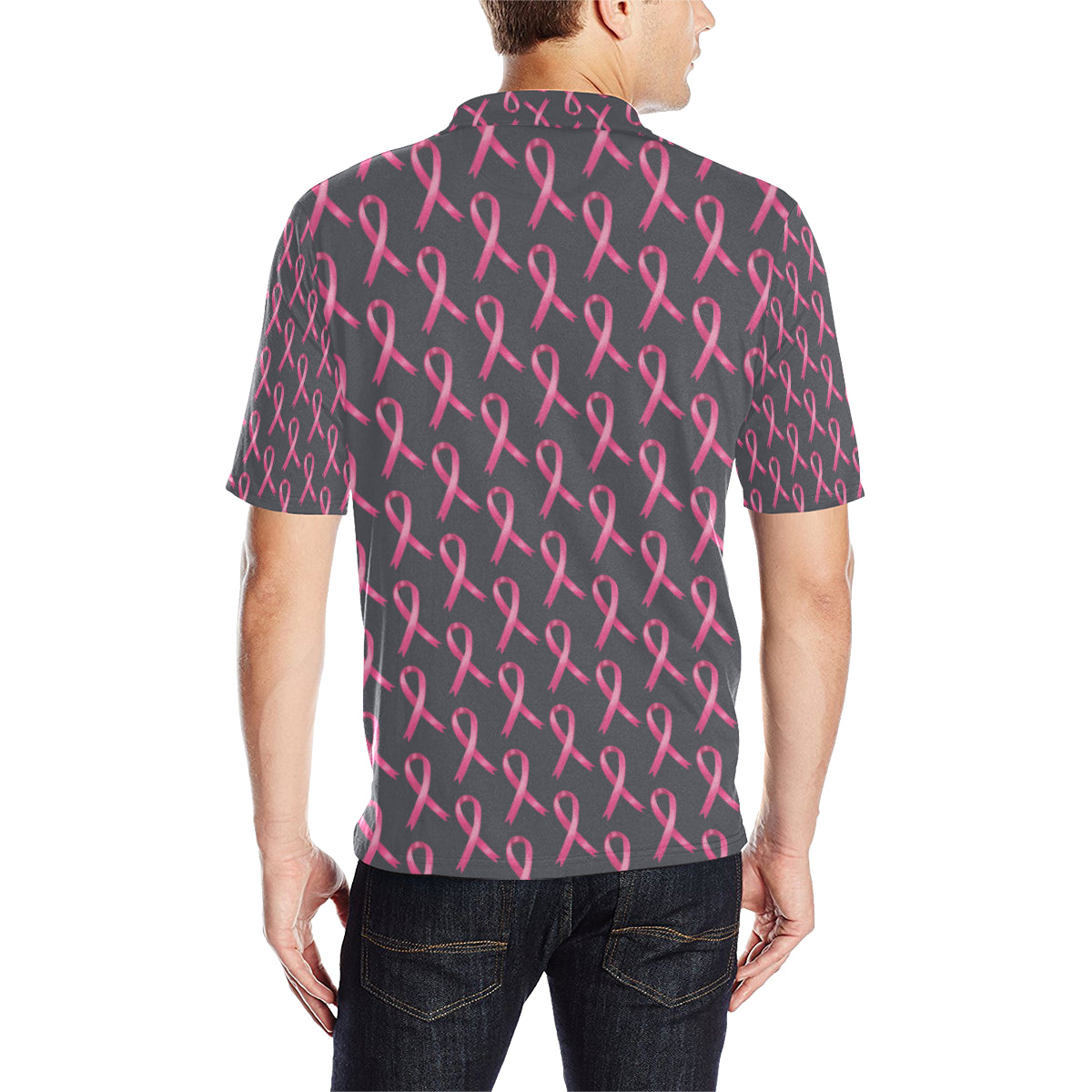 Breast Cancer Awareness Pattern Men Polo Shirt