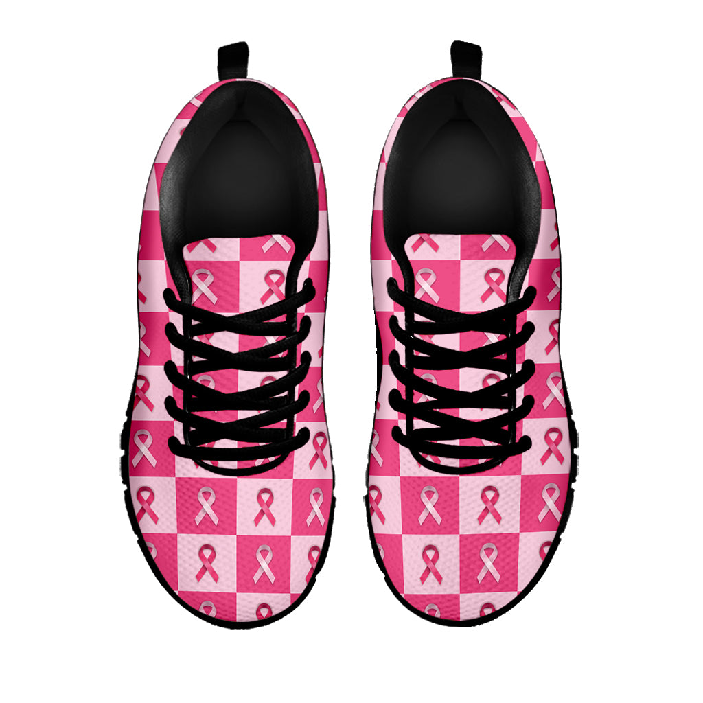 Breast Cancer Awareness Pattern Print Black Sneakers