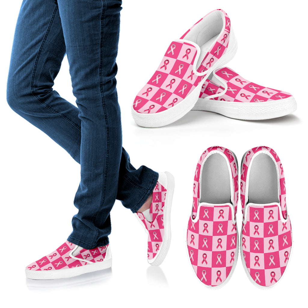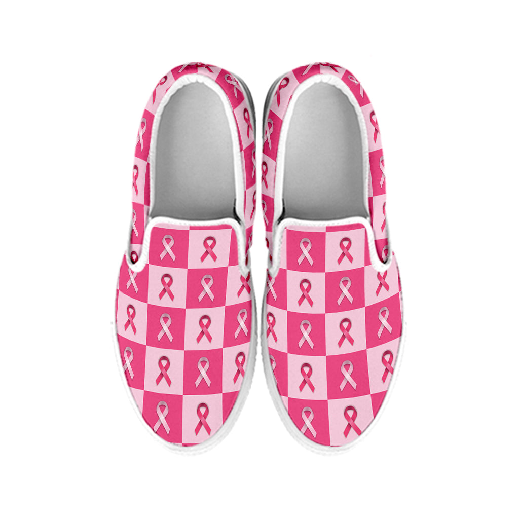 Breast Cancer Awareness Pattern Print White Slip On Shoes