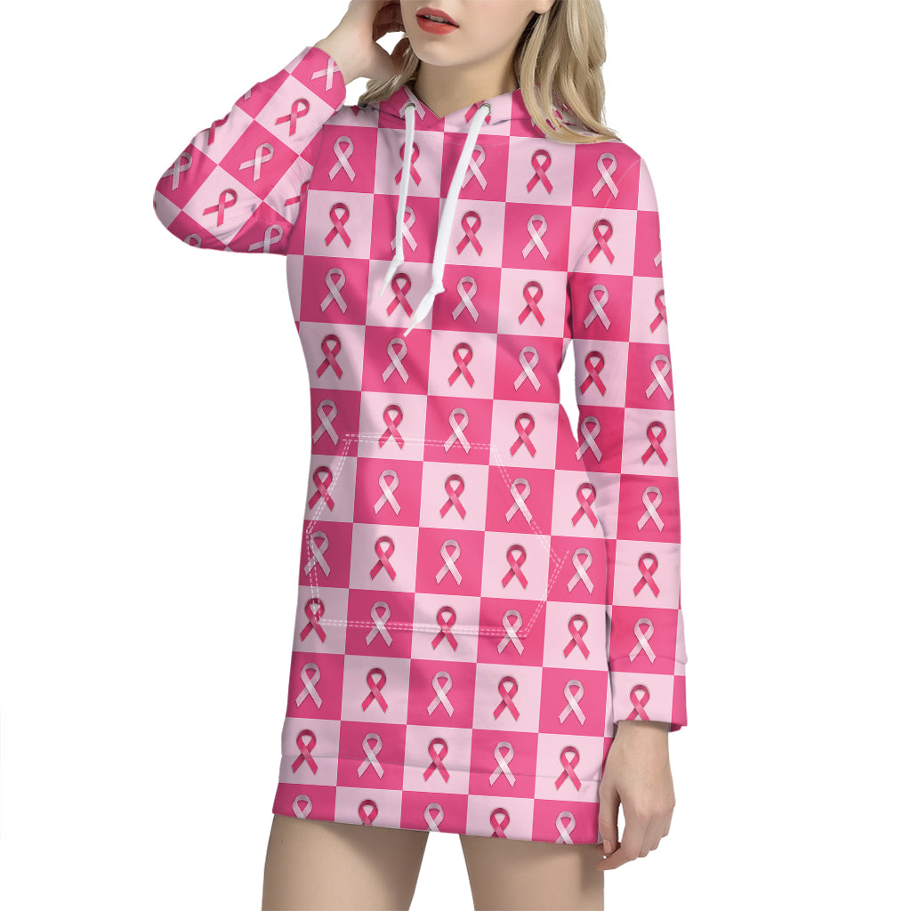 Breast Cancer Awareness Pattern Print Women’S Pullover Hoodie Dress