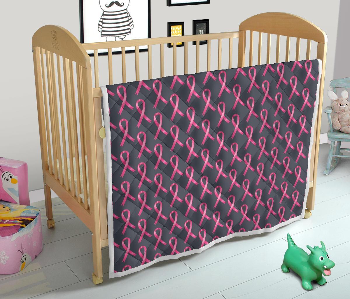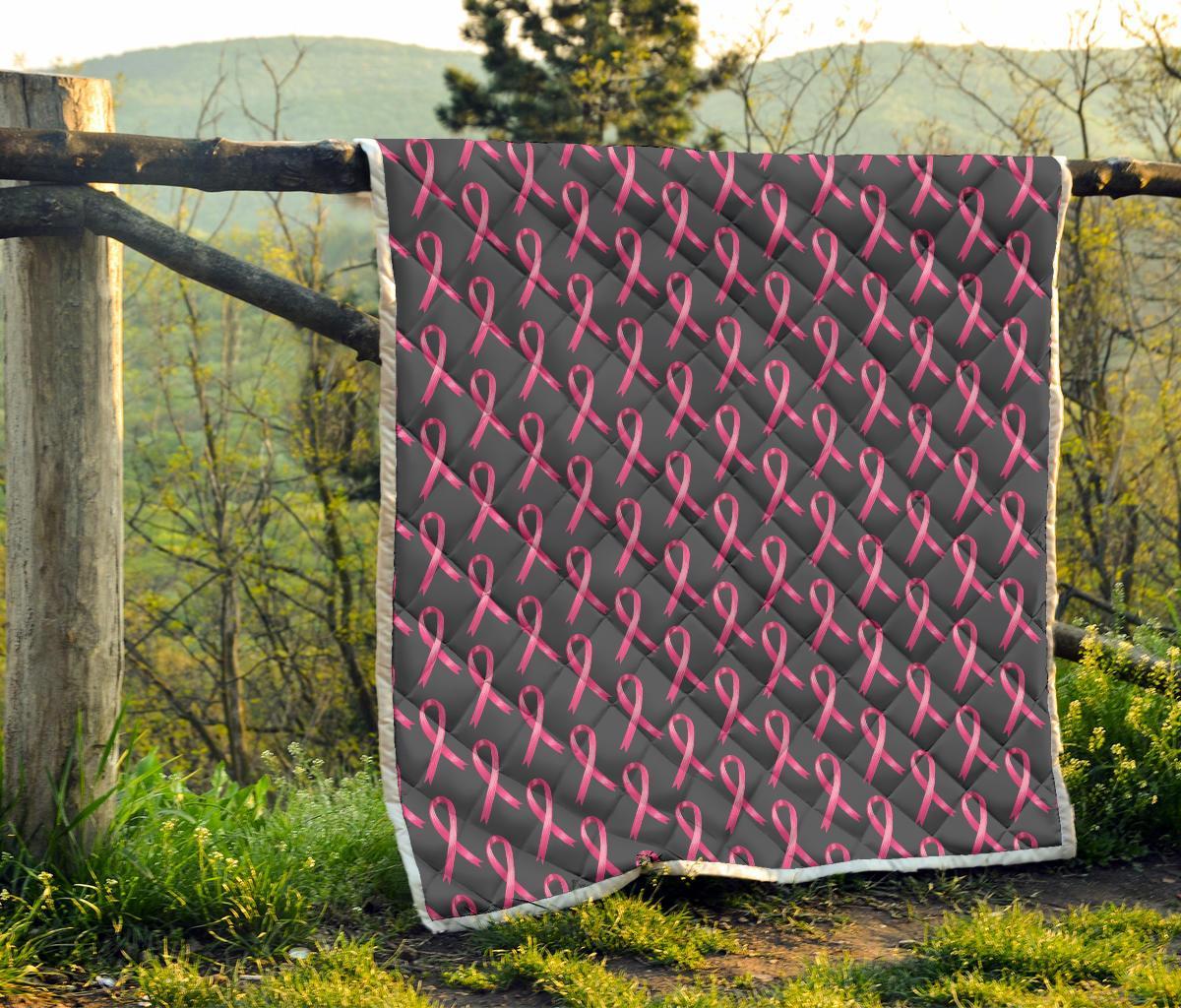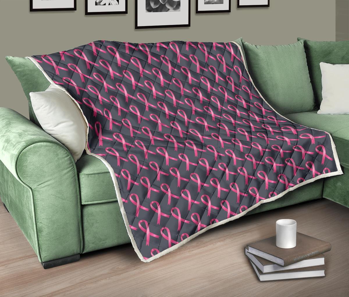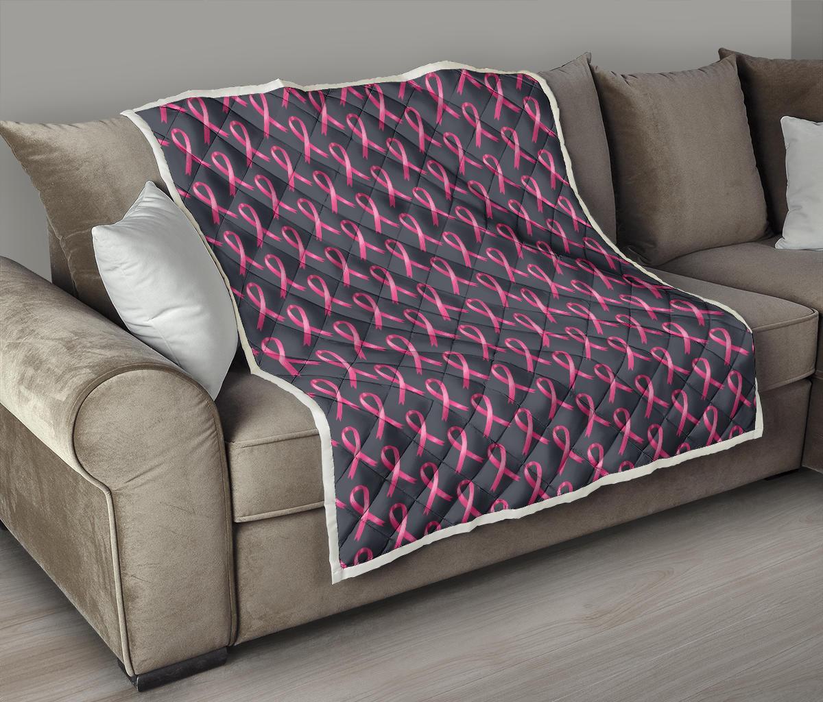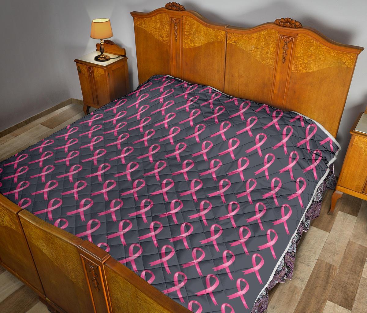 Breast Cancer Awareness Pattern Quilt Bedspread