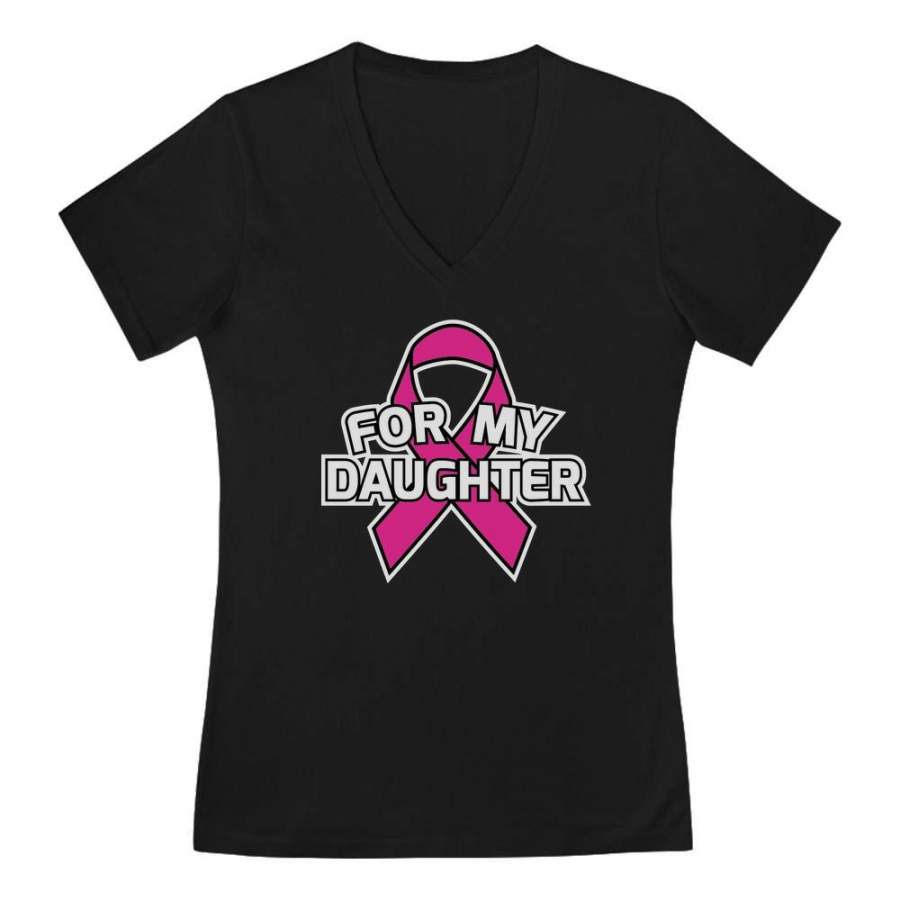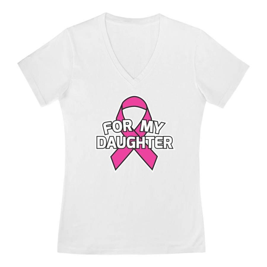 Breast Cancer Awareness – Pink Ribbon For My Daughter V-Neck Fitted Women T-Shirt