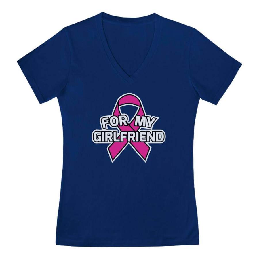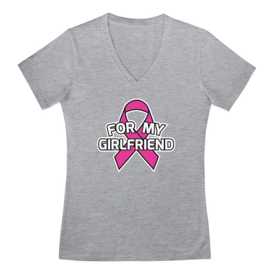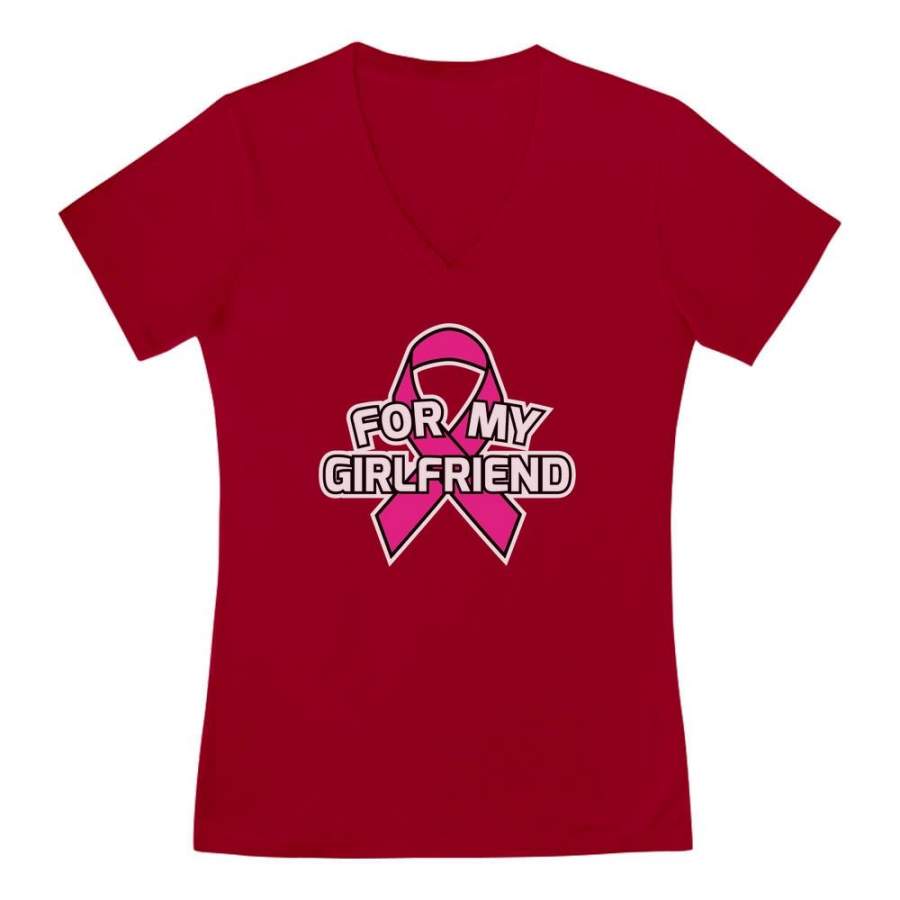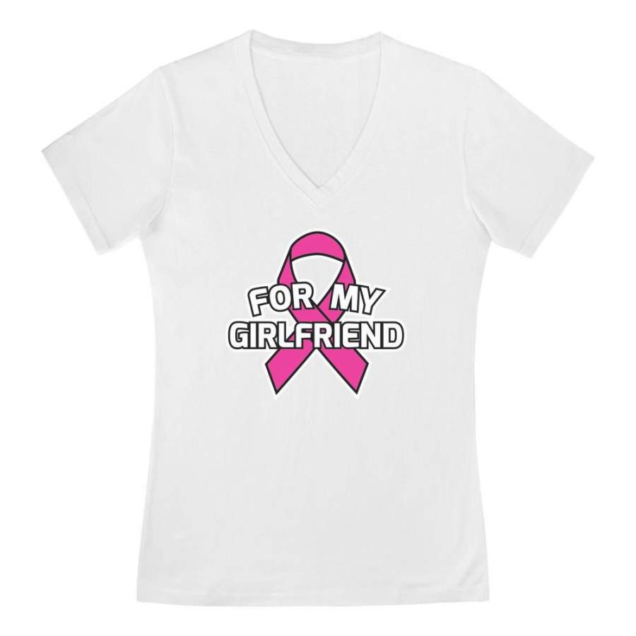 Breast Cancer Awareness – Pink Ribbon For My Girlfriend V-Neck Fitted Women T-Shirt