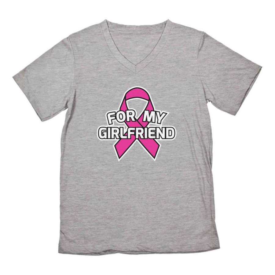 Breast Cancer Awareness – Pink Ribbon For My Girlfriend V-Neck T-Shirt