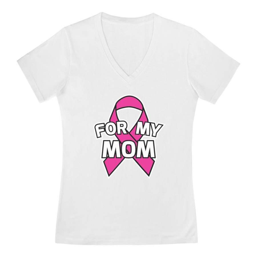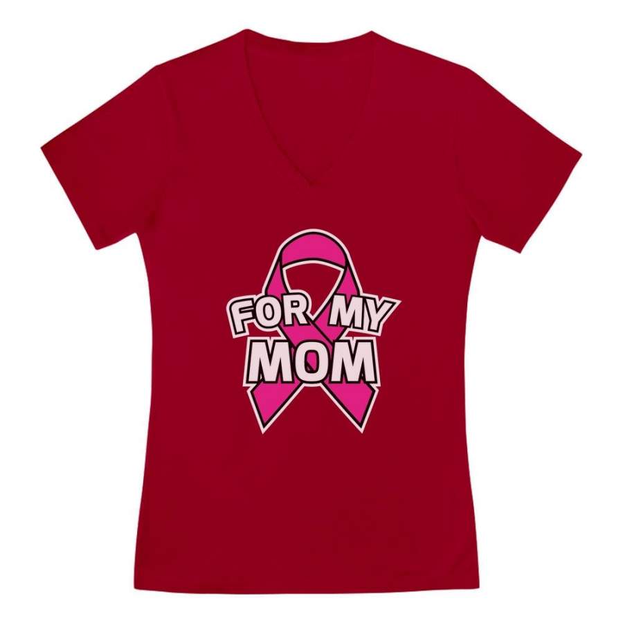 Breast Cancer Awareness – Pink Ribbon For My Mom V-Neck Fitted Women T-Shirt