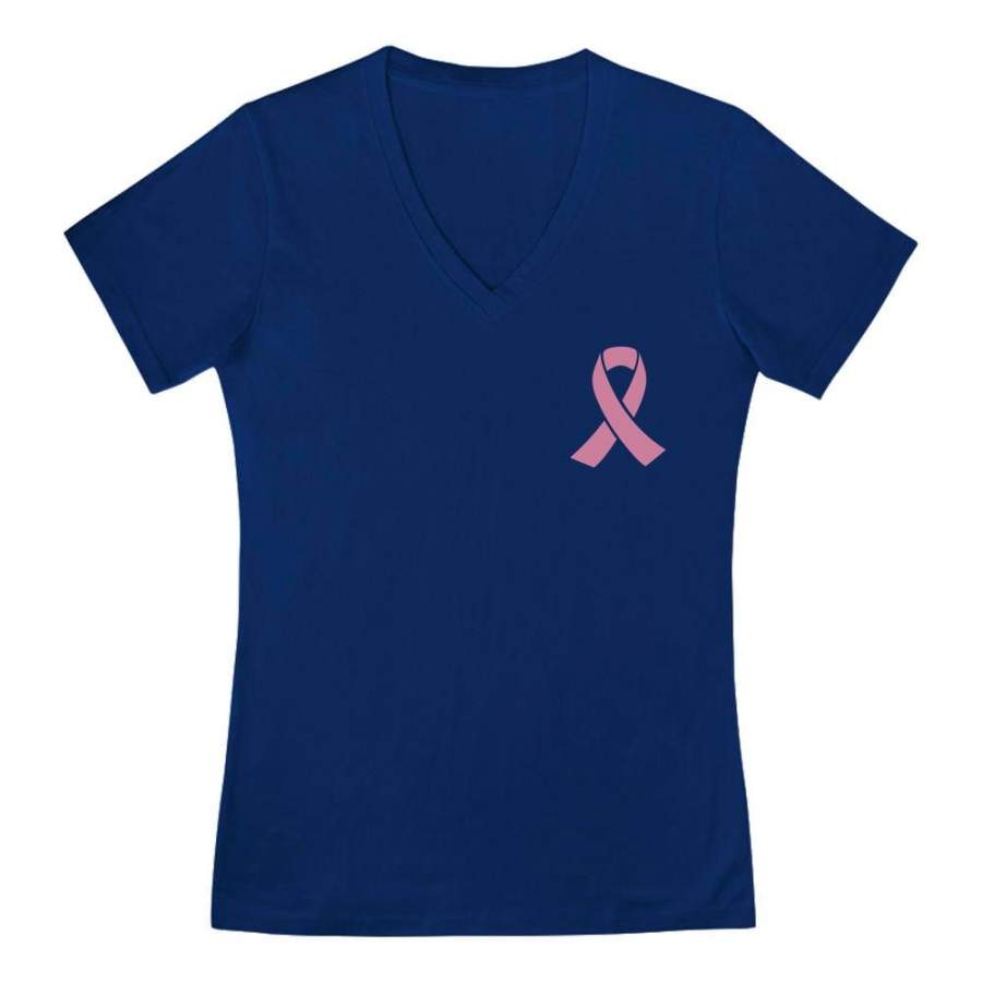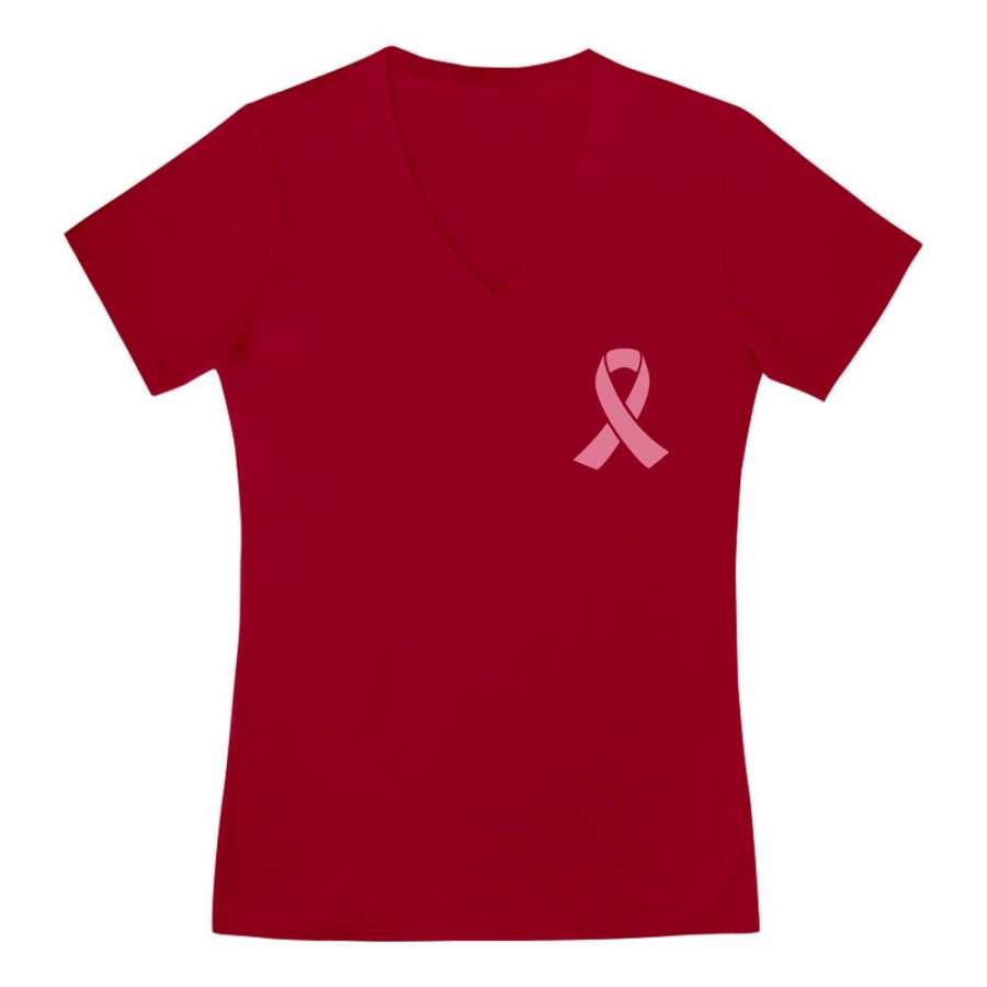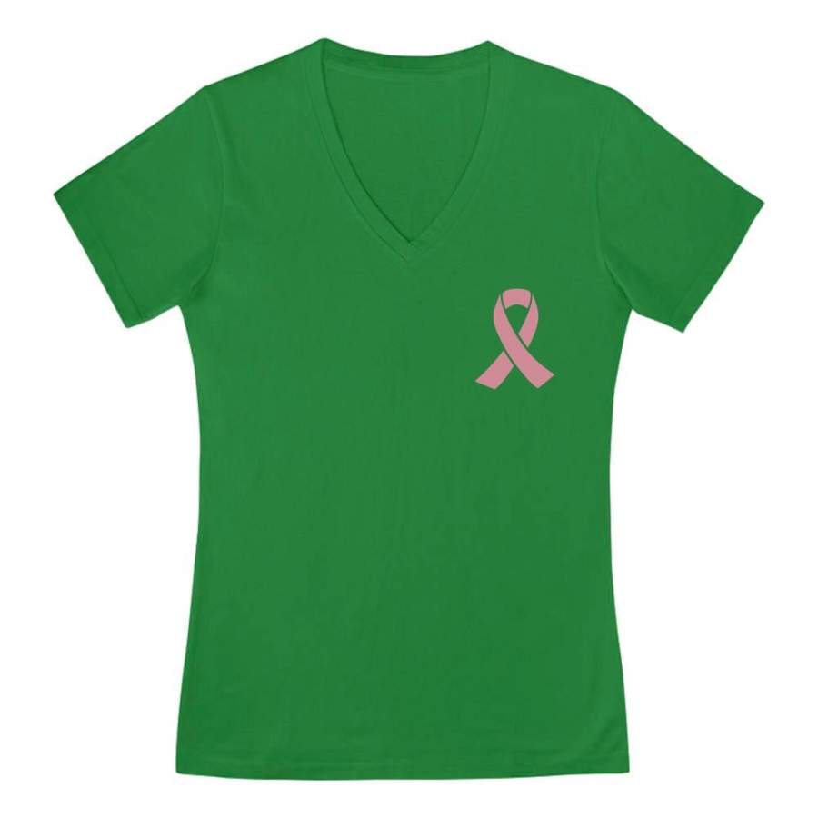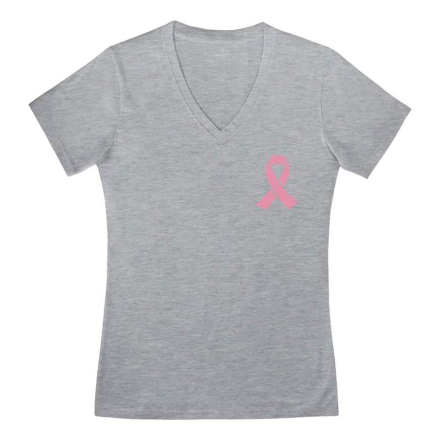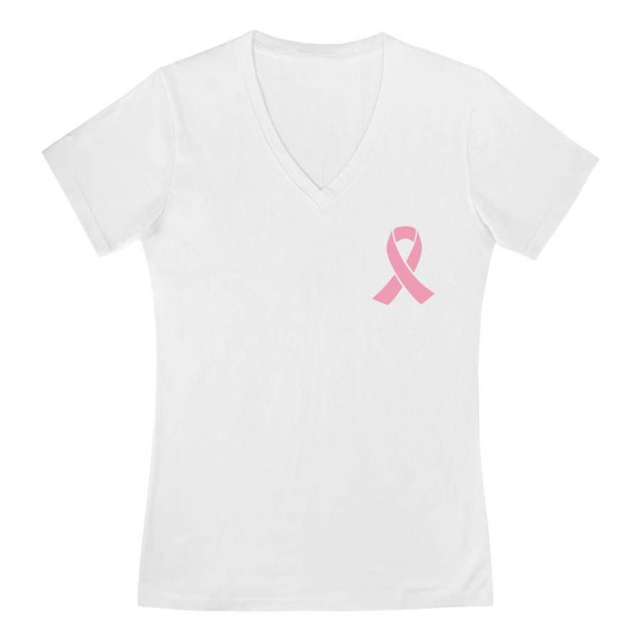 Breast Cancer Awareness Pocket Size Pink Ribbon V-Neck Fitted Women T-Shirt