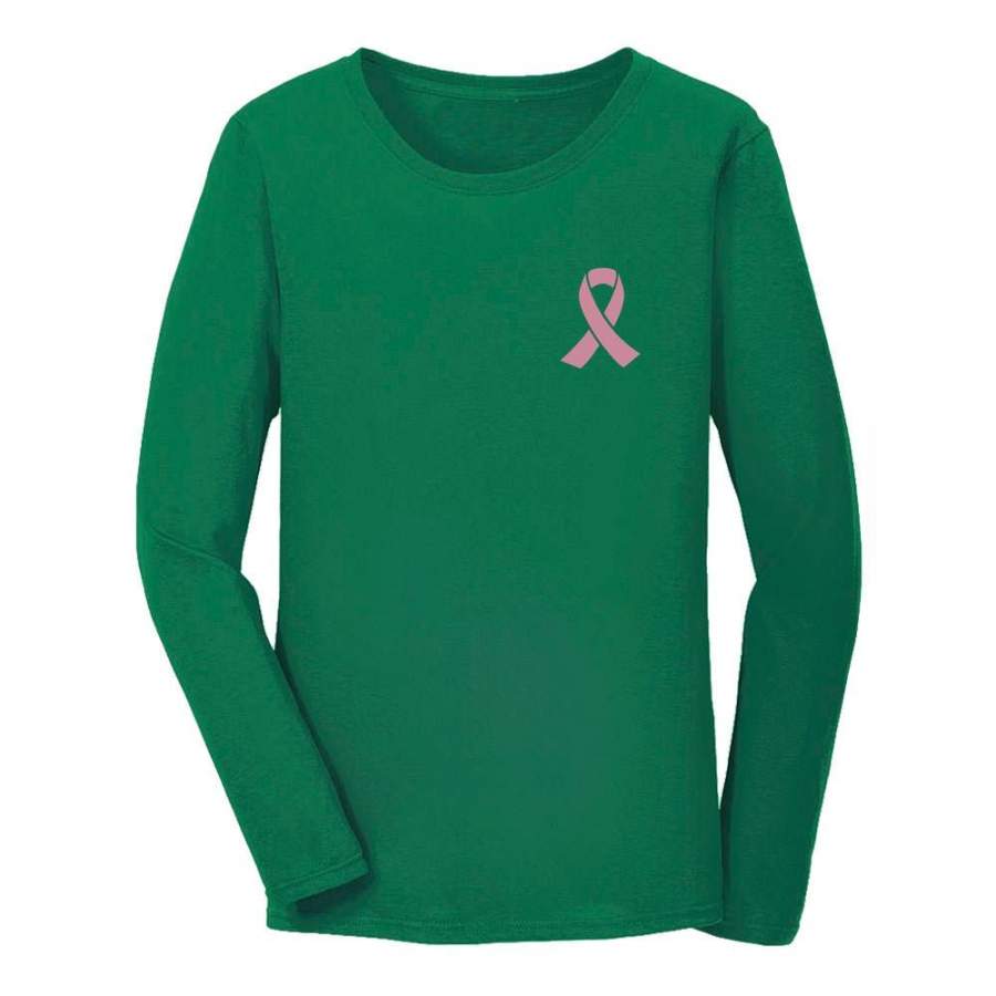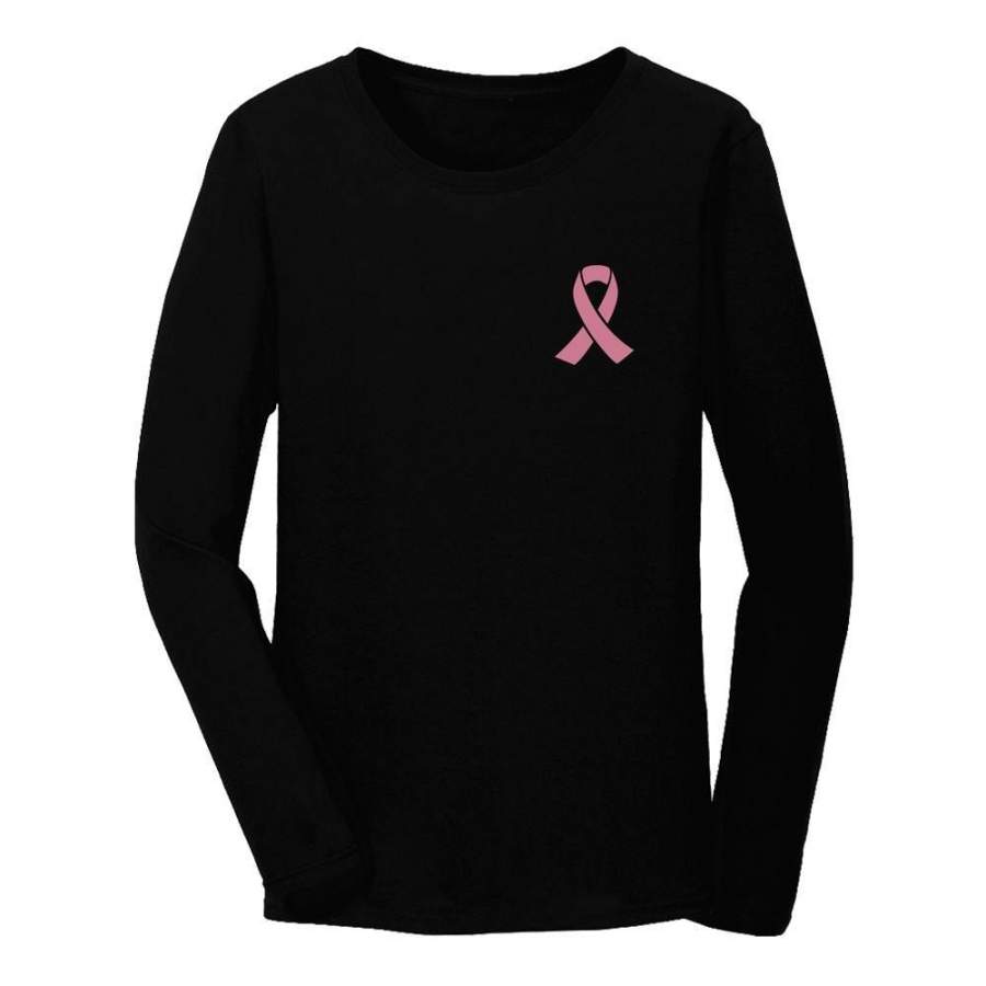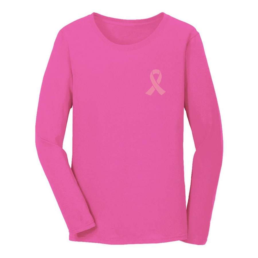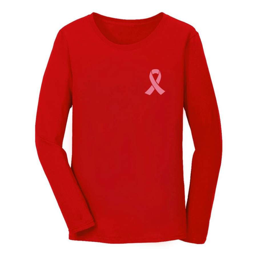 Breast Cancer Awareness Pocket Size Pink Ribbon Women Long Sleeve T-Shirt
