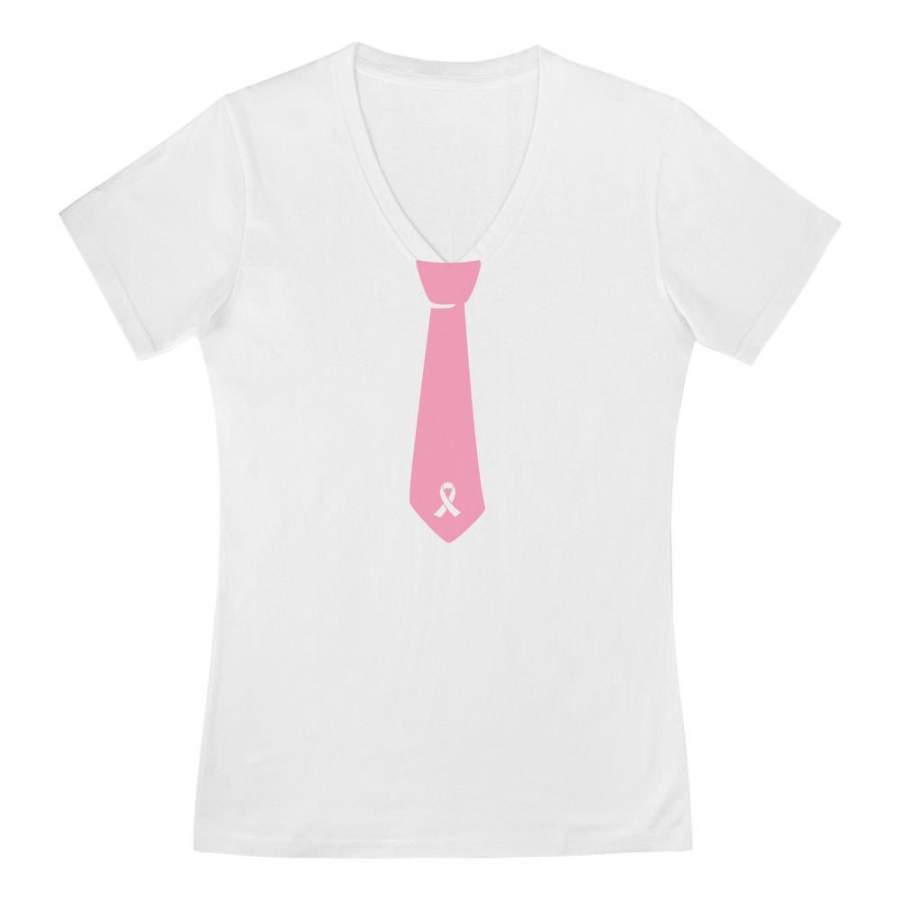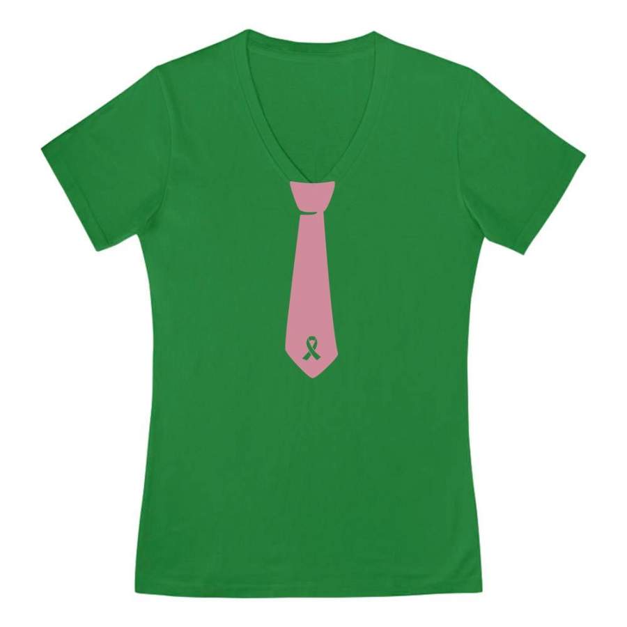 Breast Cancer Awareness Ribbon Tie V-Neck Fitted Women T-Shirt