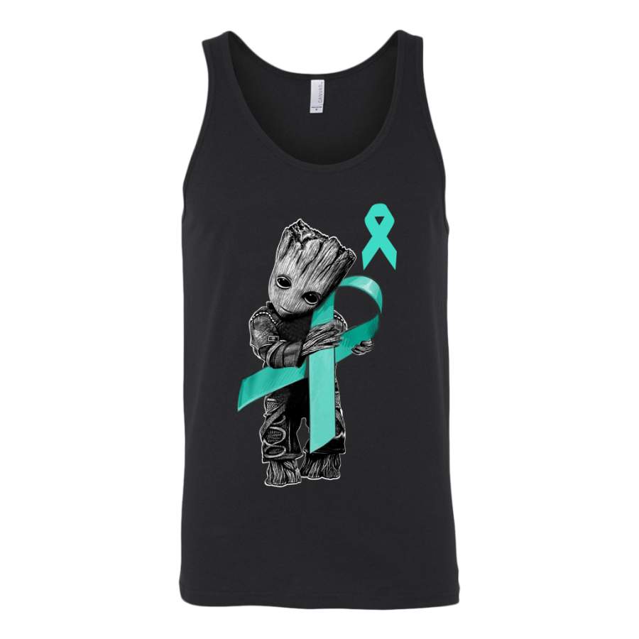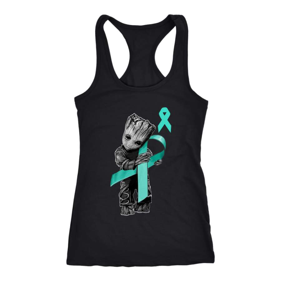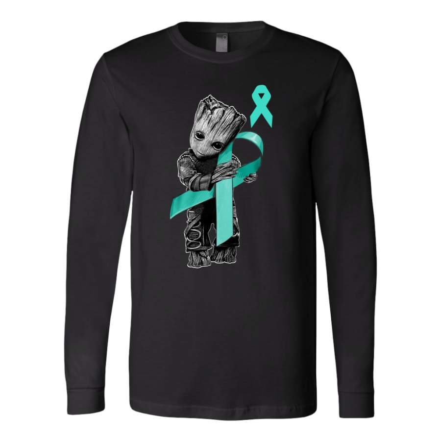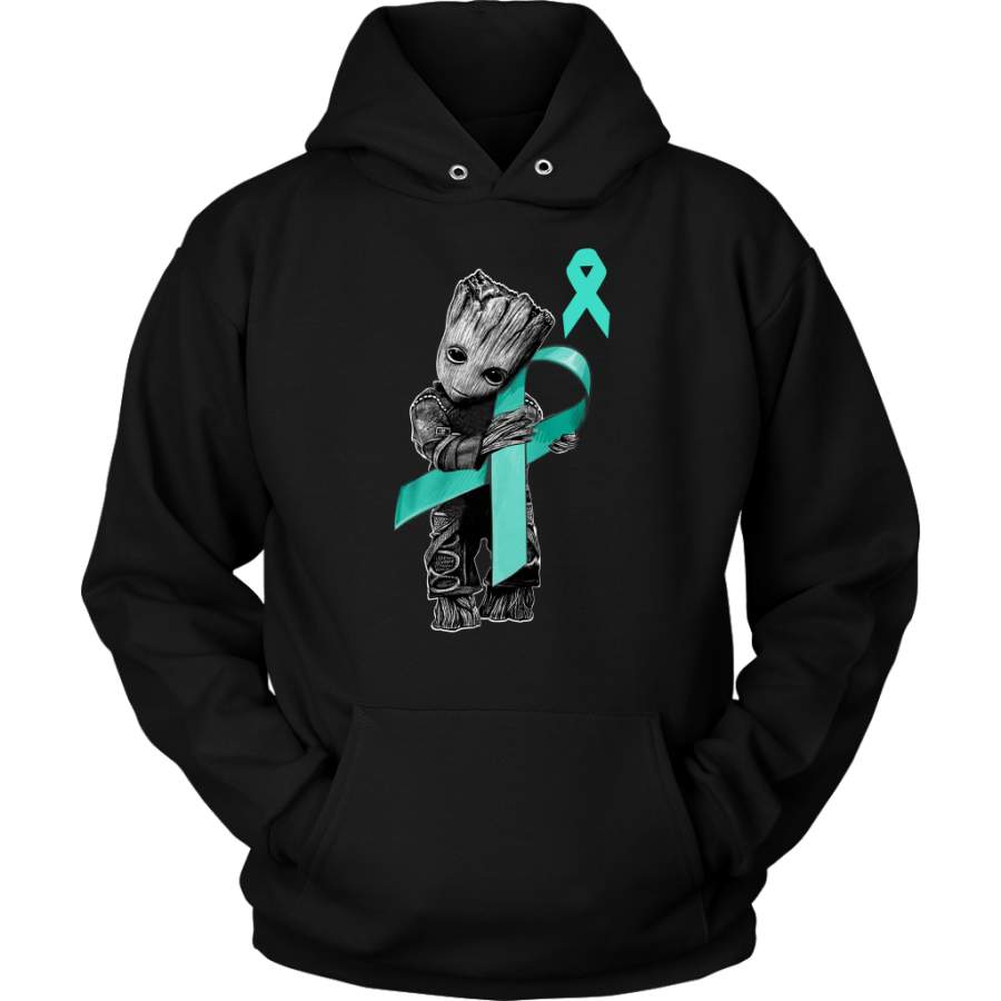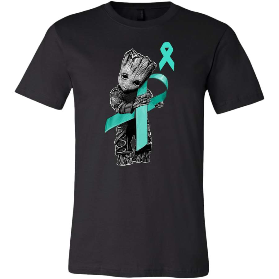 Breast Cancer Awareness Shirt, Baby Groot Hug Teal Ribbon Shirt