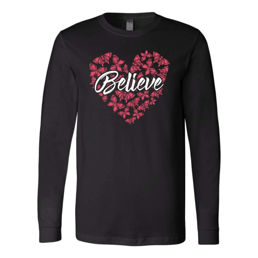 Breast Cancer Awareness Shirt, Believe Heart Butterfly Shirt