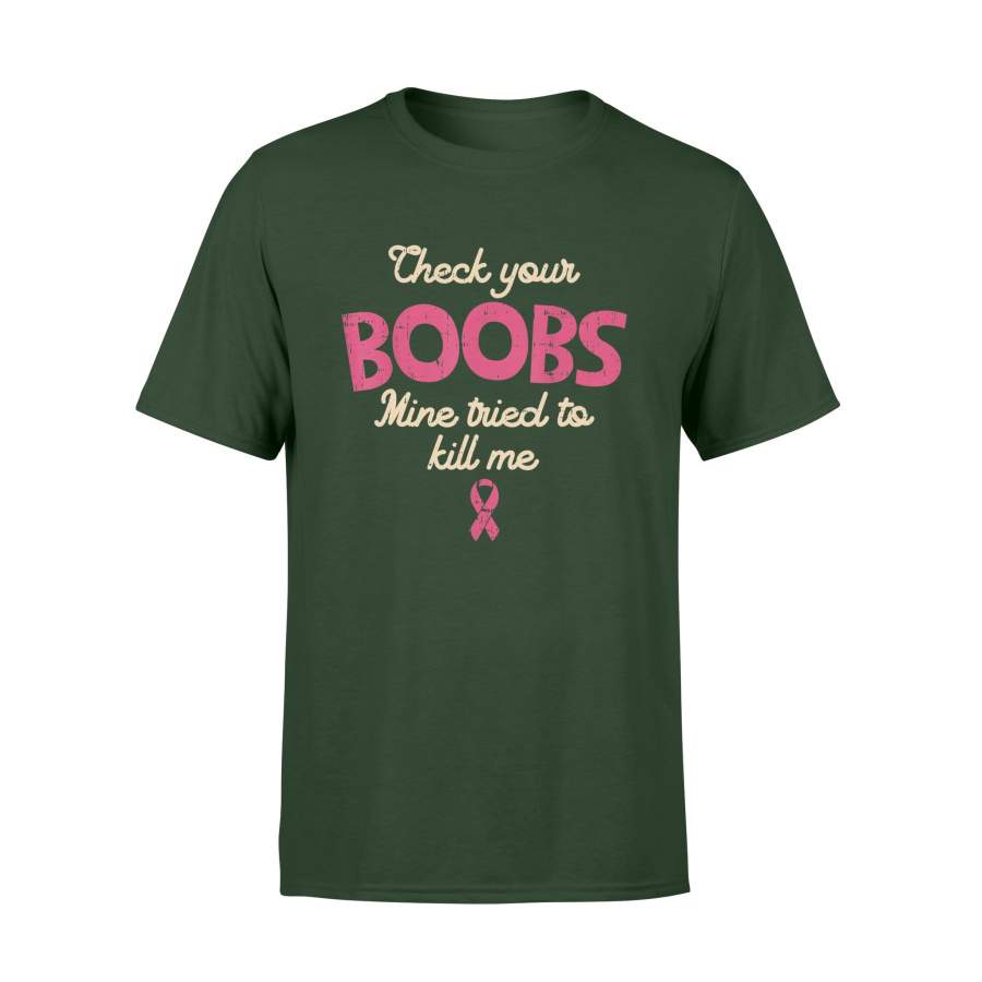 Breast Cancer Awareness Shirt Check Your Boobs Survivor Gift T-Shirt – Standard T-shirt