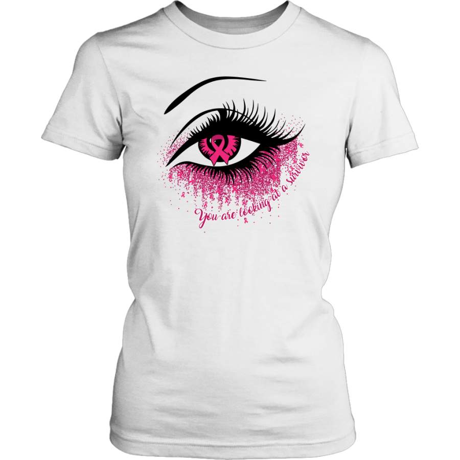 Breast Cancer Awareness Shirt, You Are Looking At a Survivor Ribbon Eye Shirt