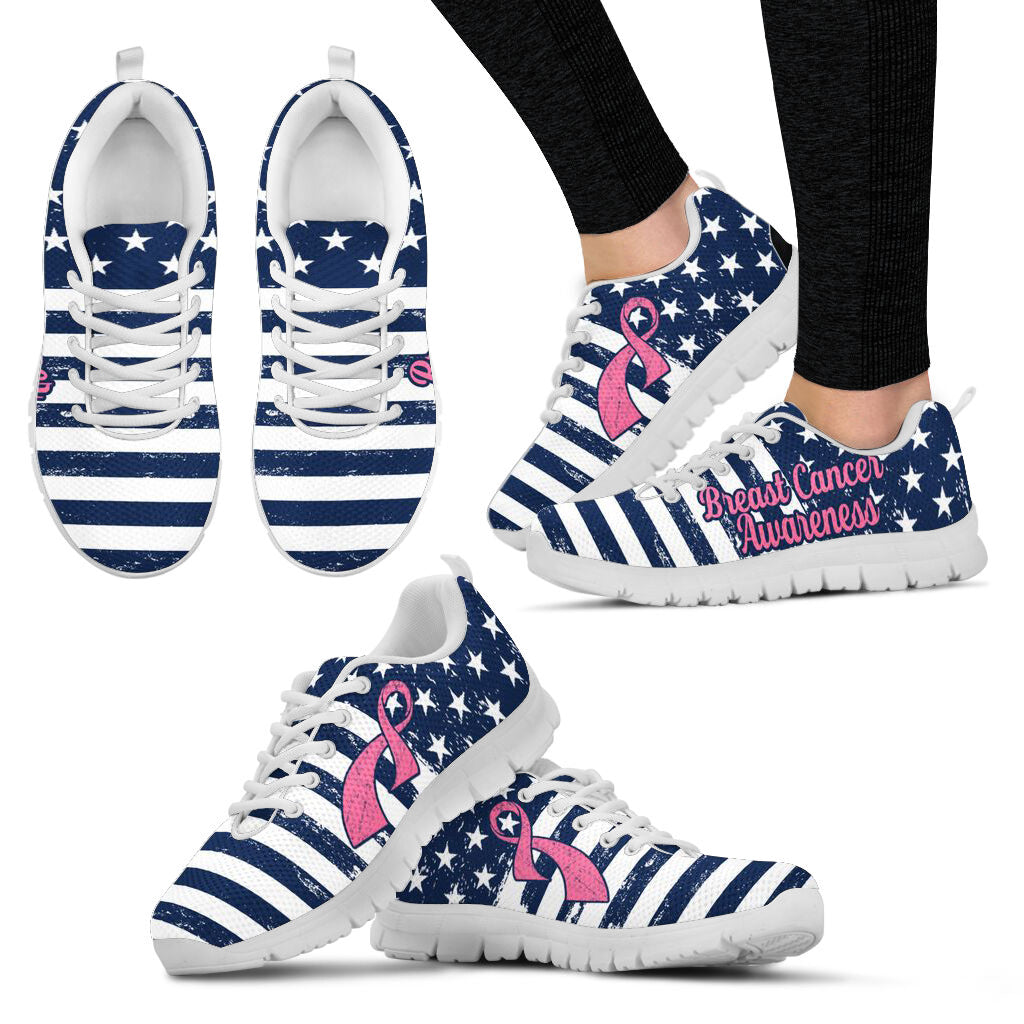 Breast Cancer Awareness Shoes American Blue Sneaker Walking Shoes – Best Shoes For Men And Women
