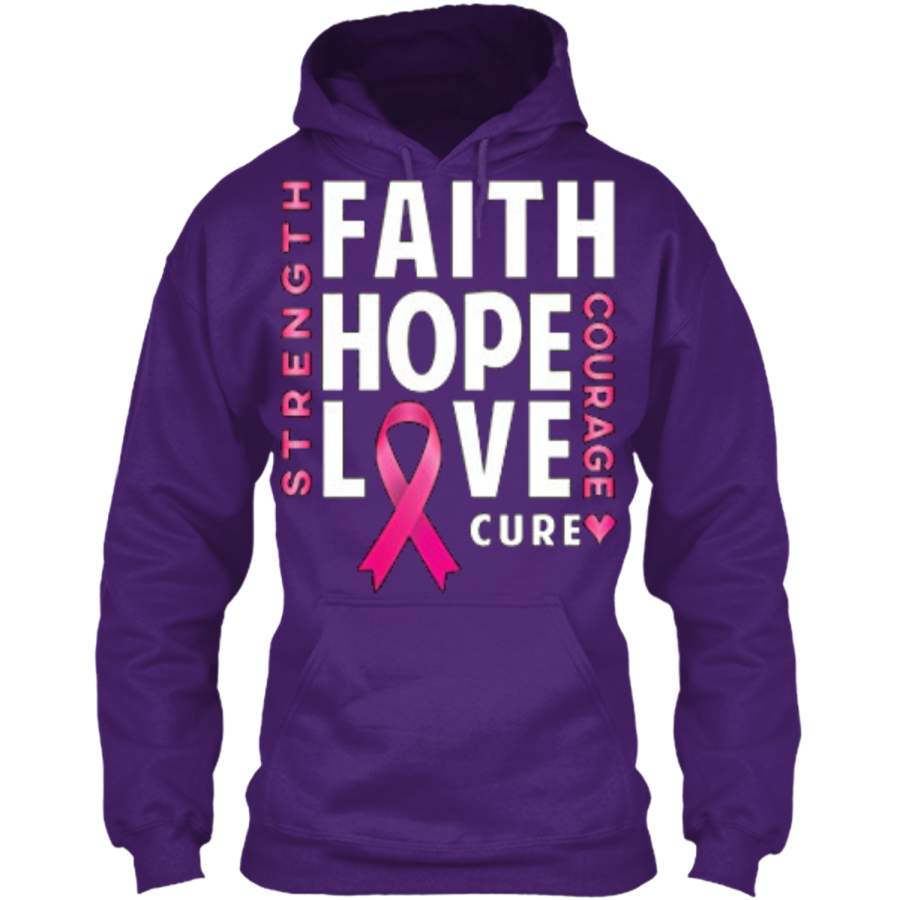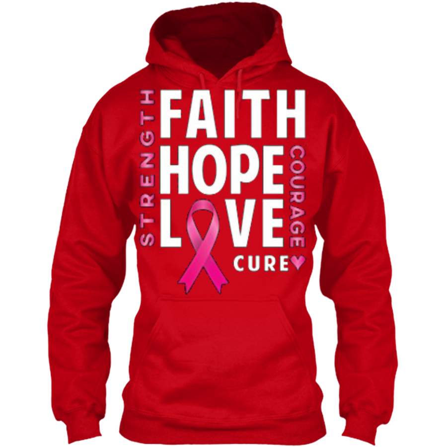 Breast Cancer Awareness Strength Faith Hope Love Cure Pullover Hoodie 8 oz