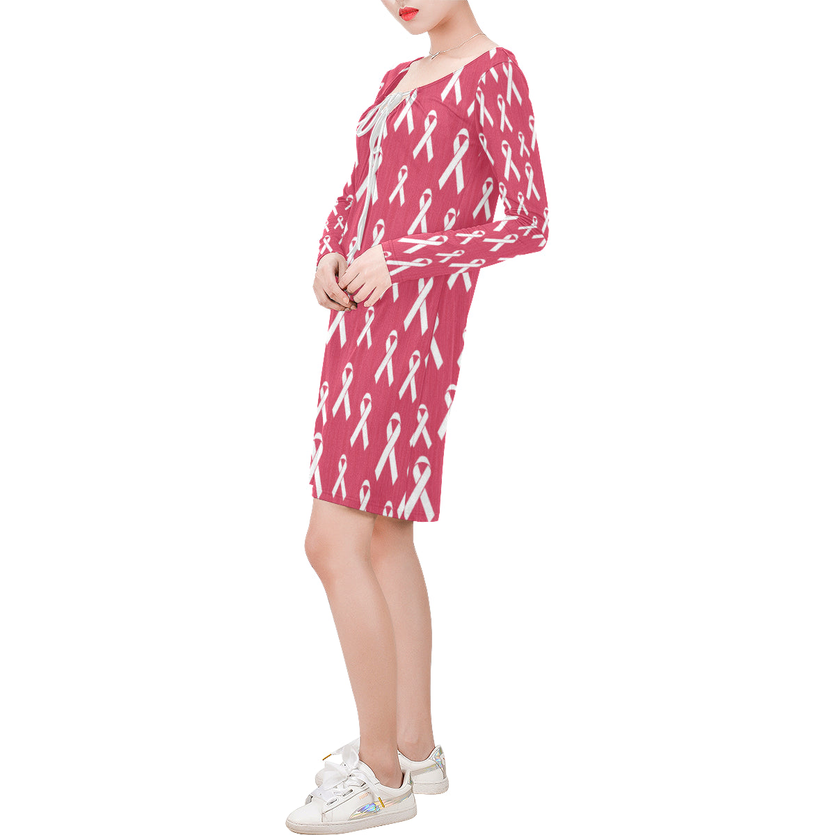 Breast Cancer Awareness Symbol Long Sleeves Dress