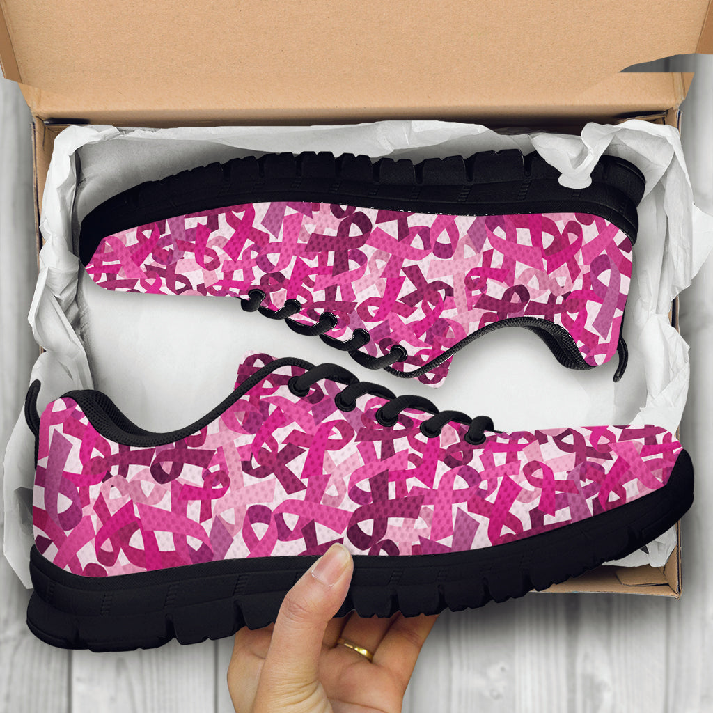 Breast Cancer Awareness Symbol Print Black Sneakers