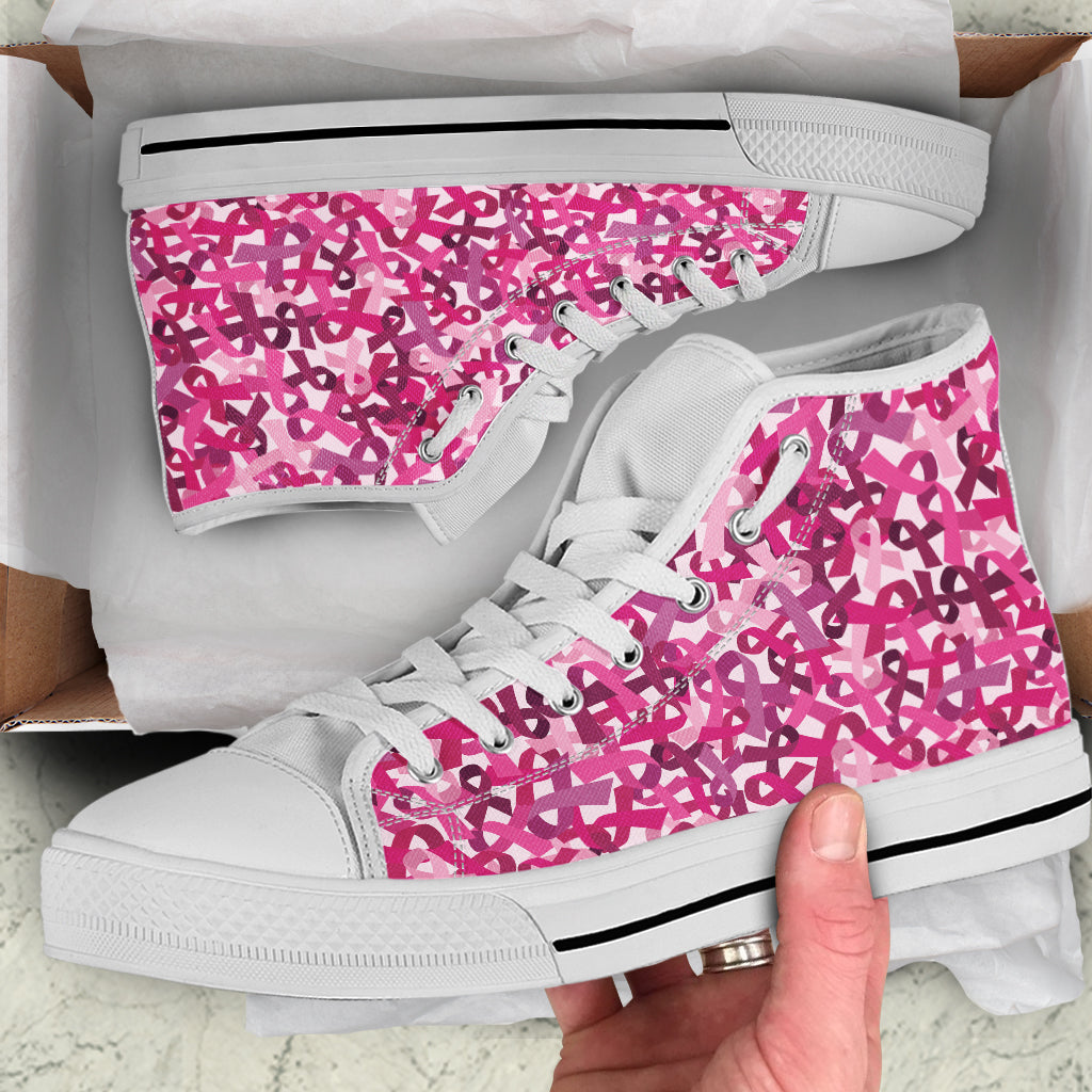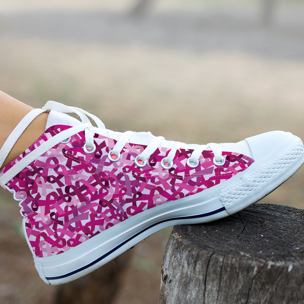 Breast Cancer Awareness Symbol Print White High Top Shoes
