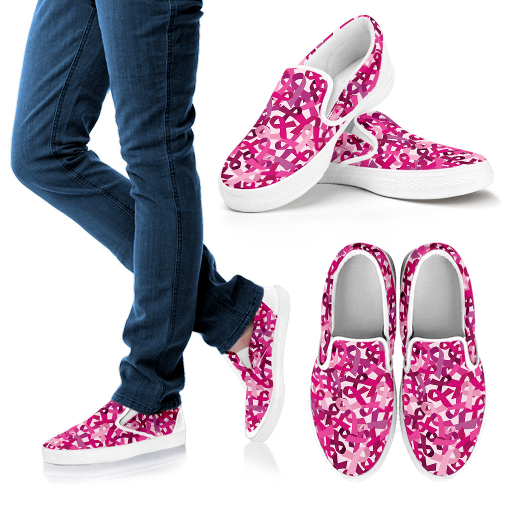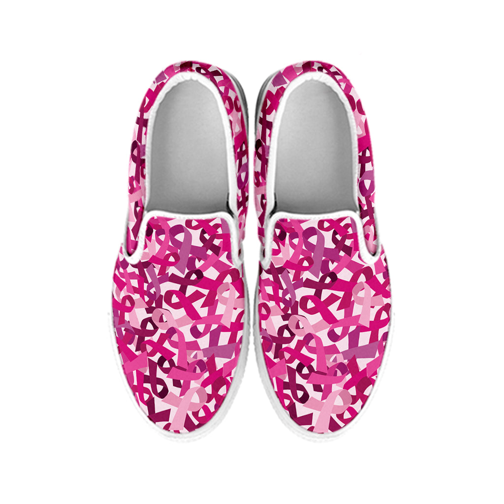Breast Cancer Awareness Symbol Print White Slip On Shoes