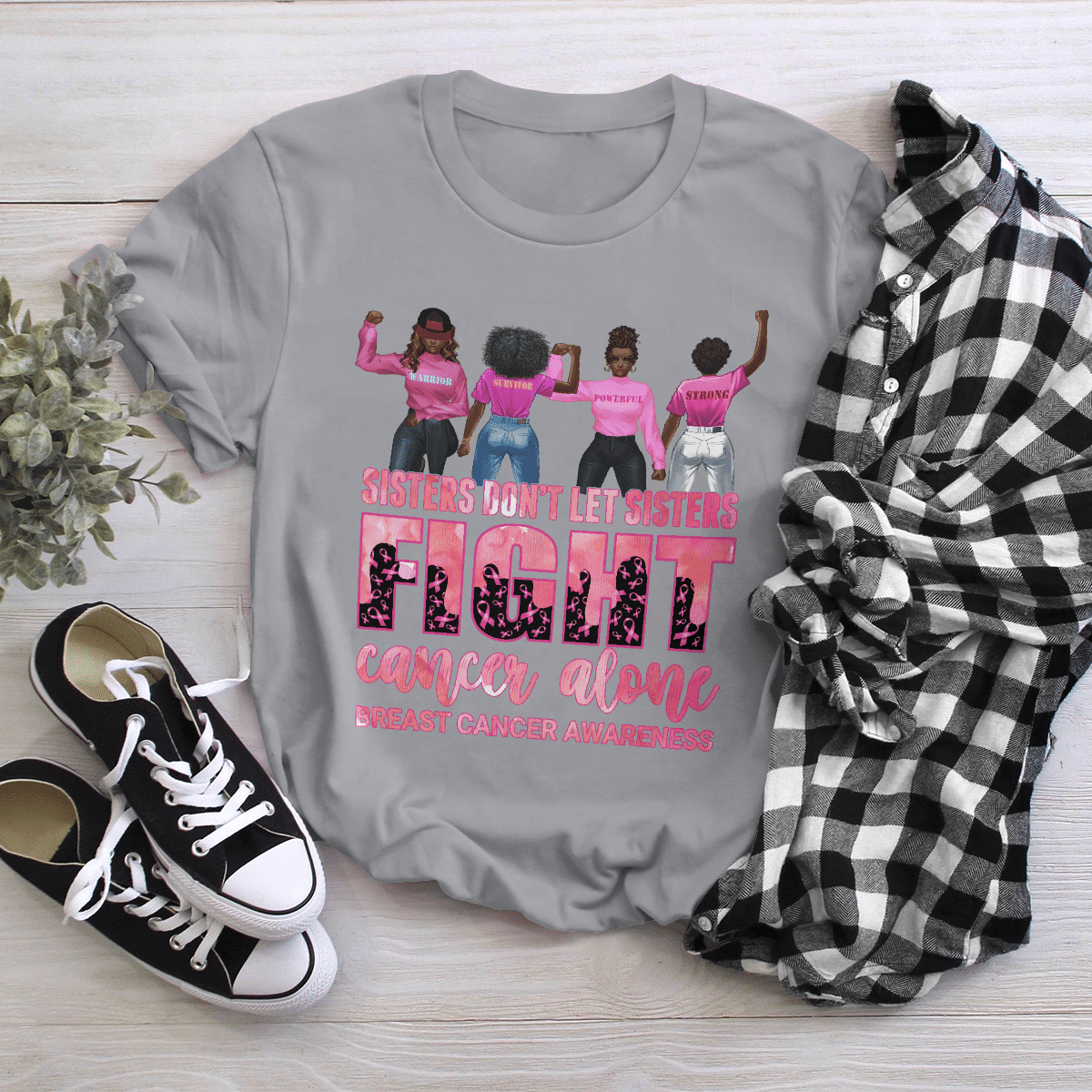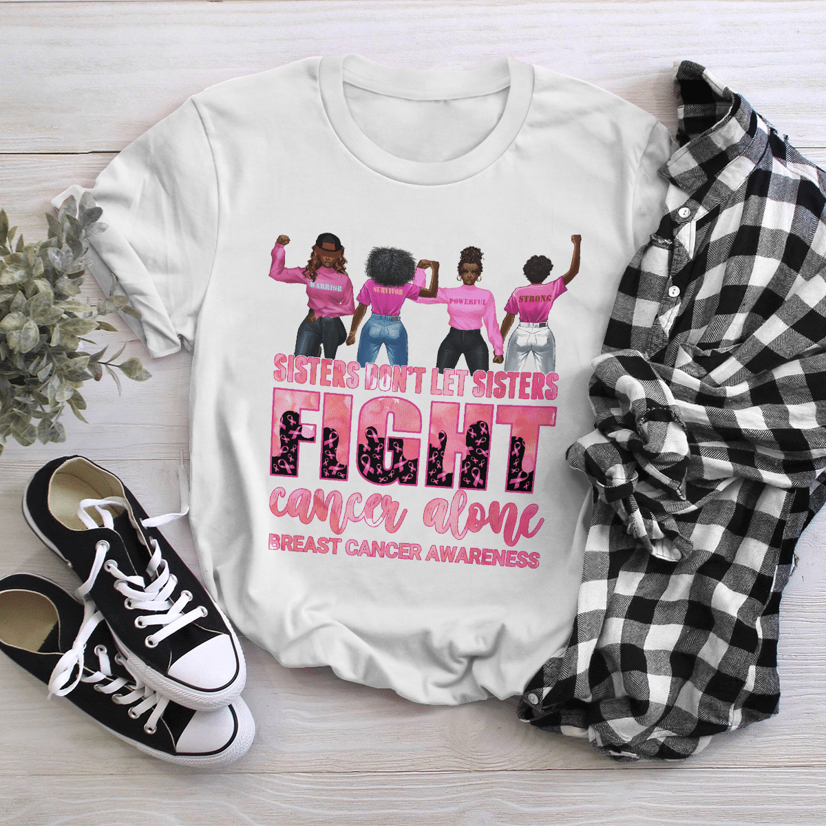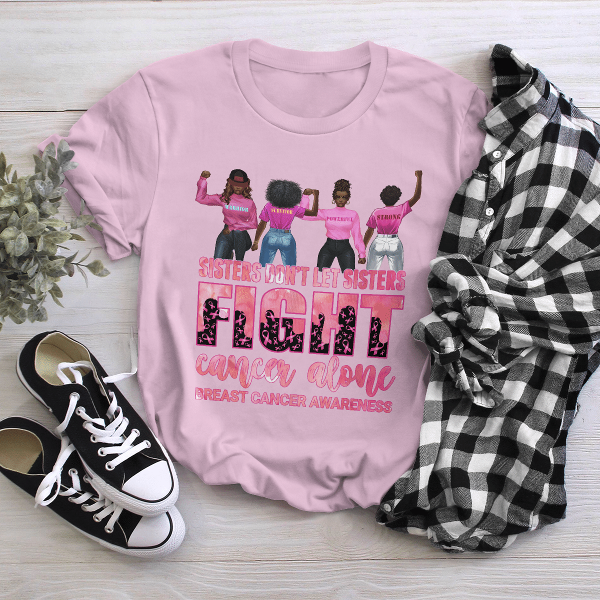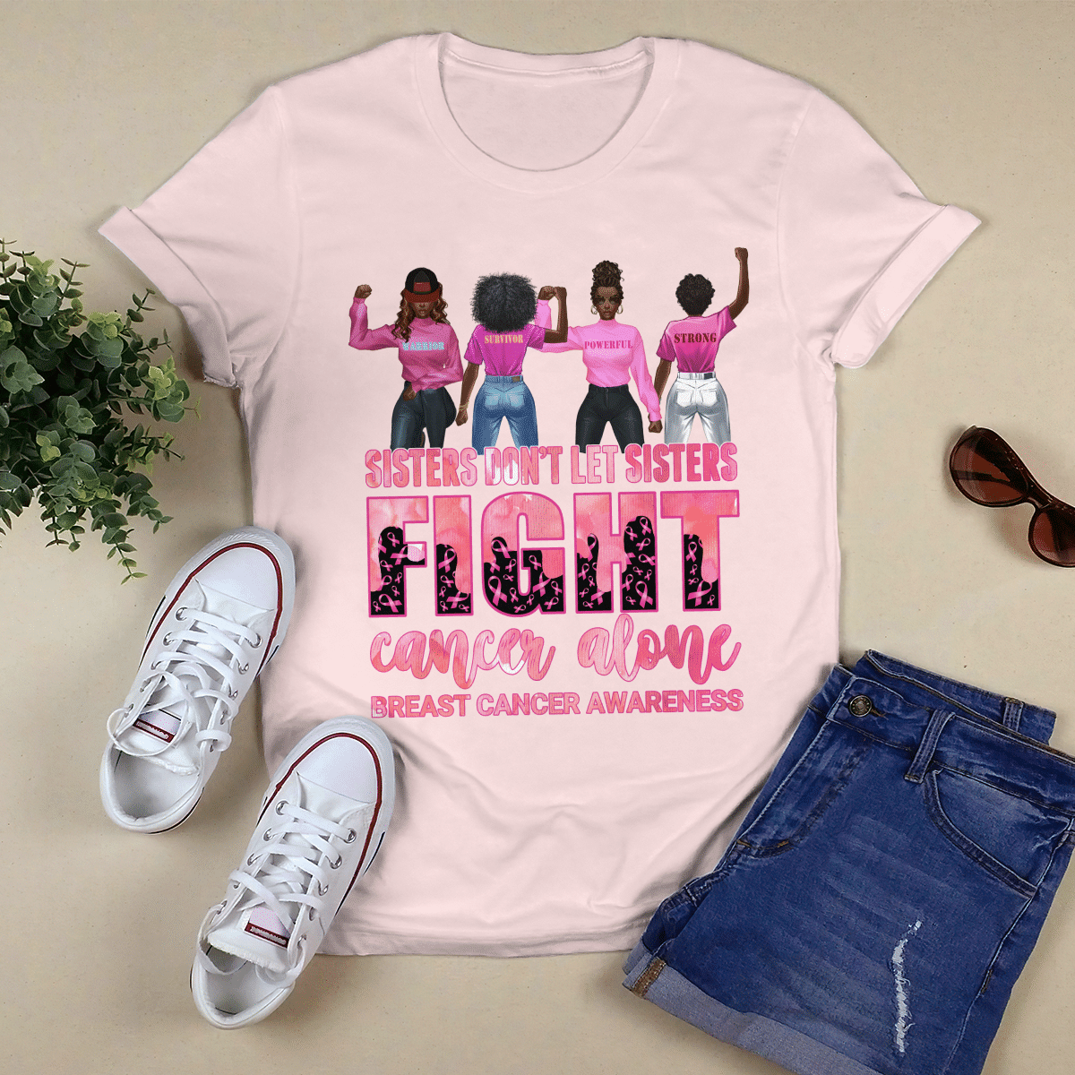 Breast Cancer Awareness Tshirt For Black Girl Don’T Let Sisters Fight Alone Shirts