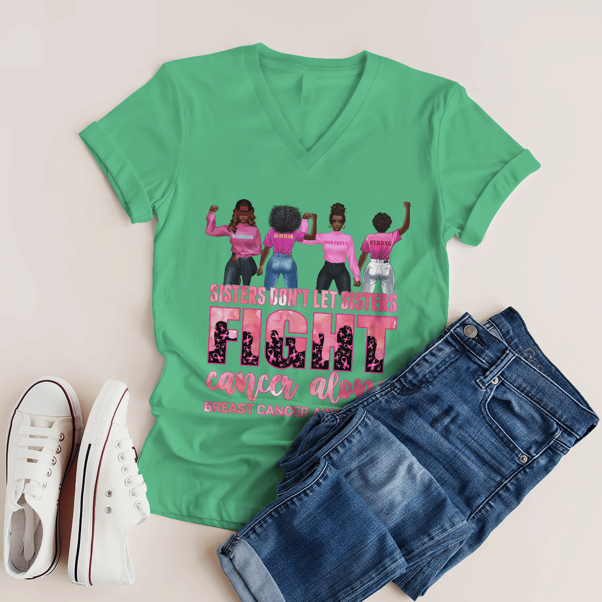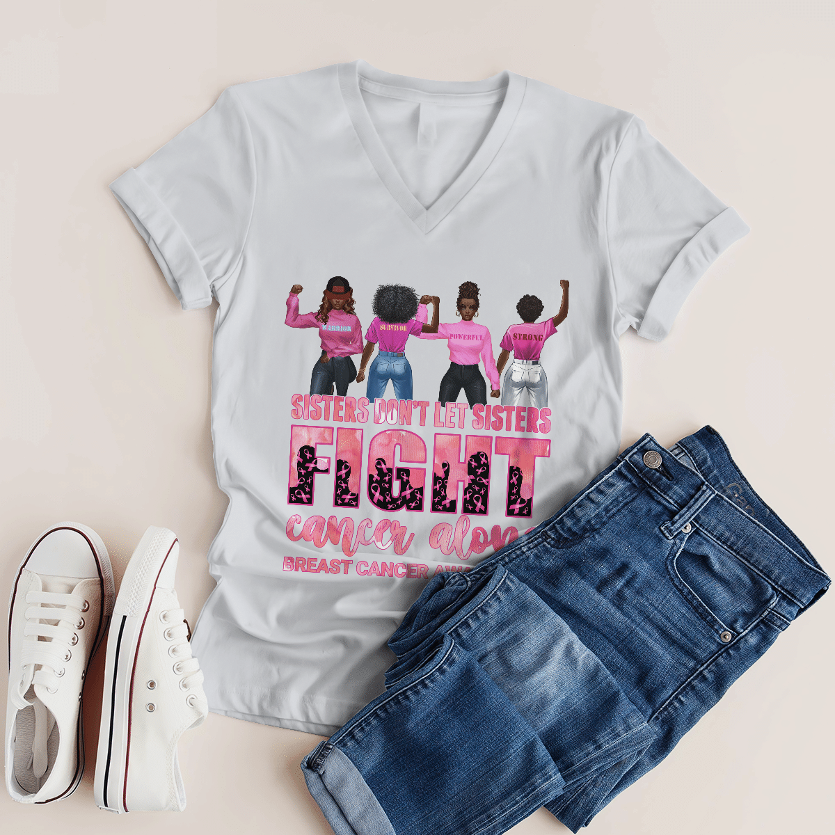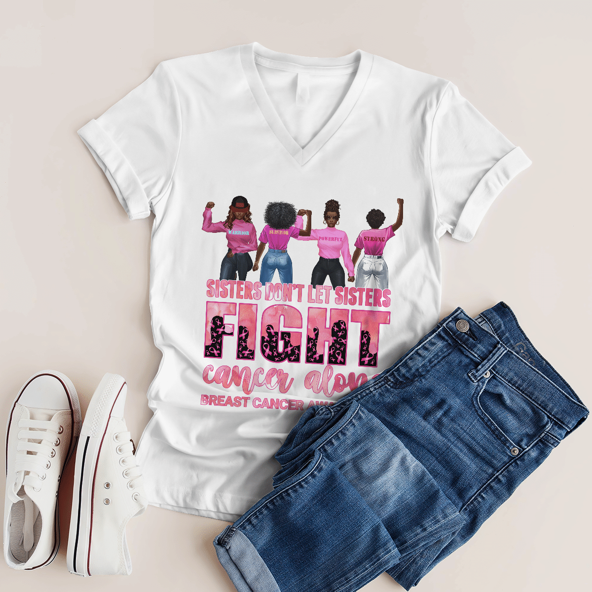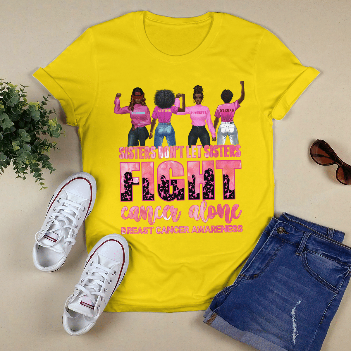 Breast Cancer Awareness Tshirt For Black Girl Don’T Let Sisters Fight Alone Shirts
