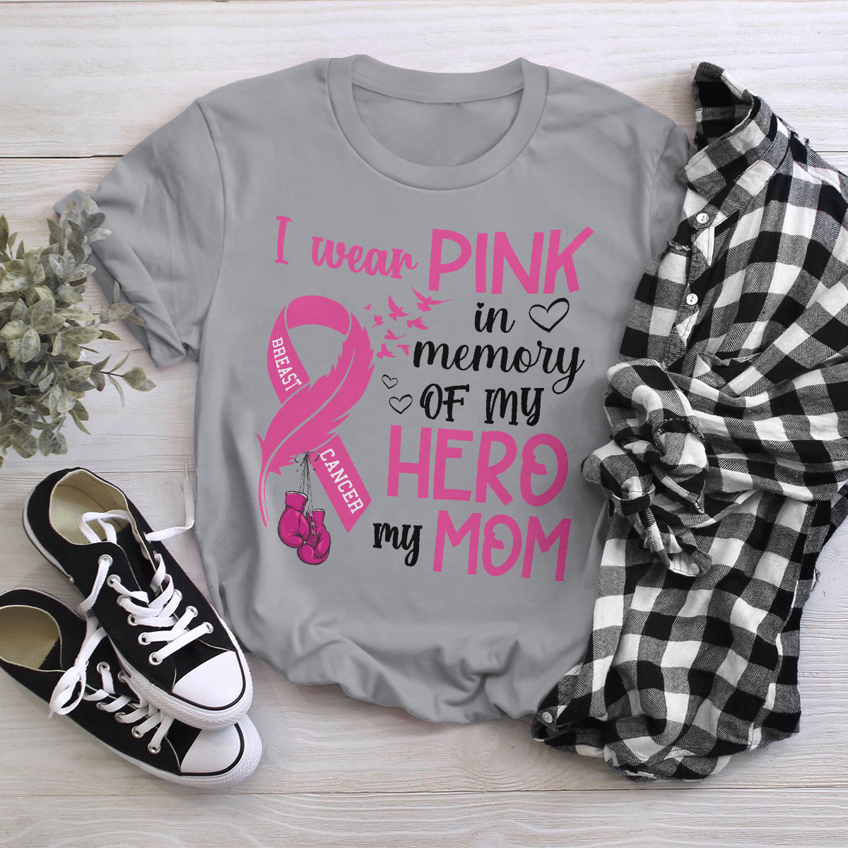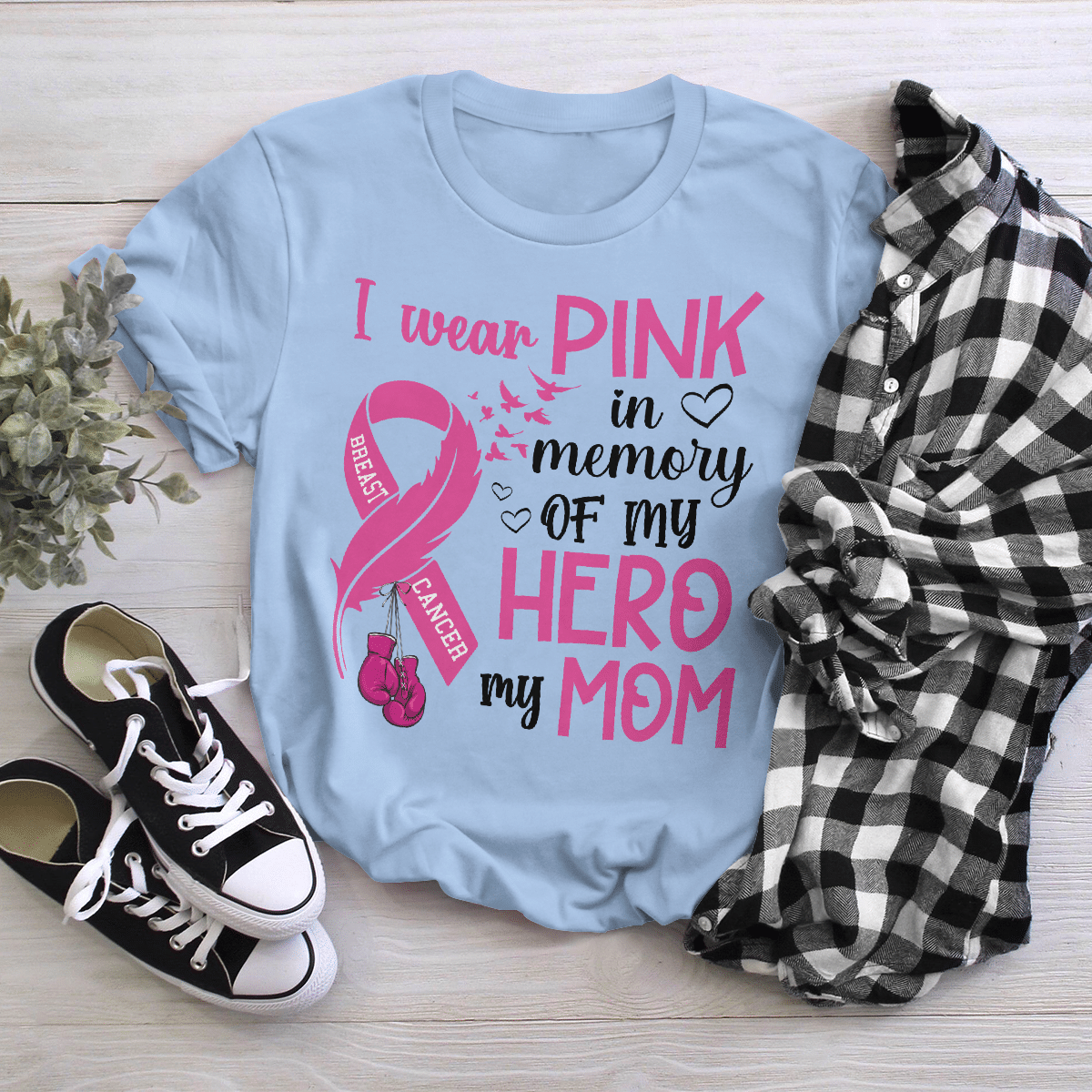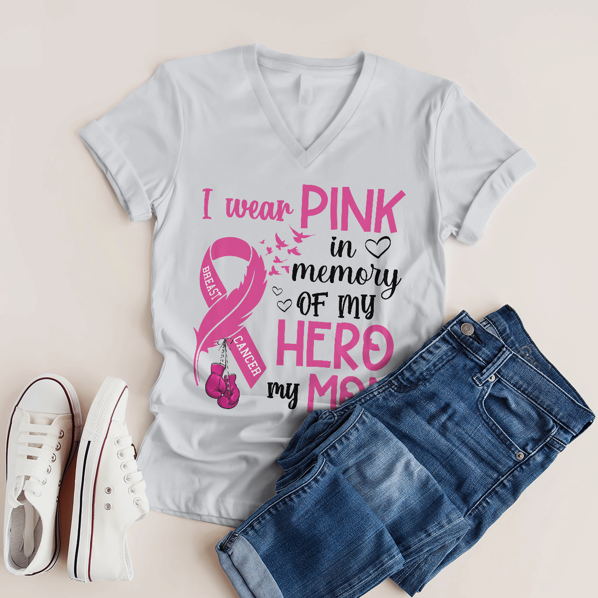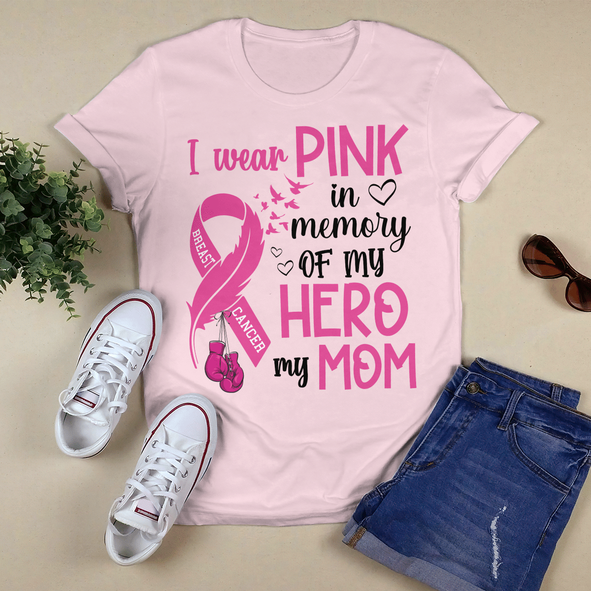Breast Cancer Awareness Tshirt For Black Girl I Wear Pink In Memory Of My Hero My Mom Shirts