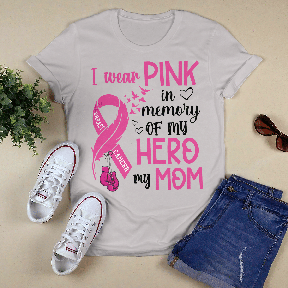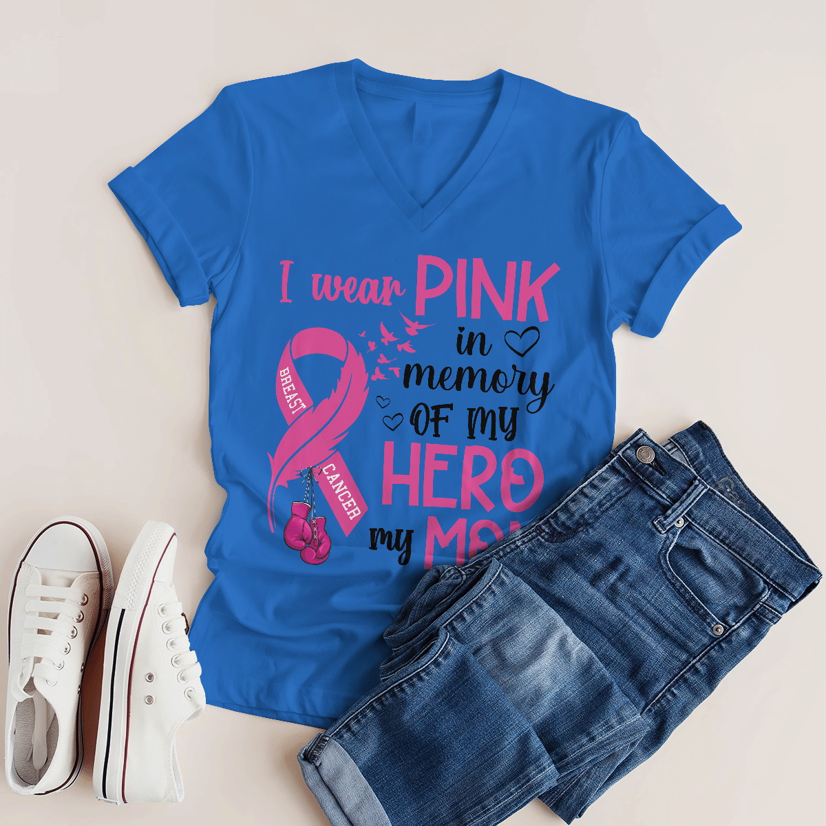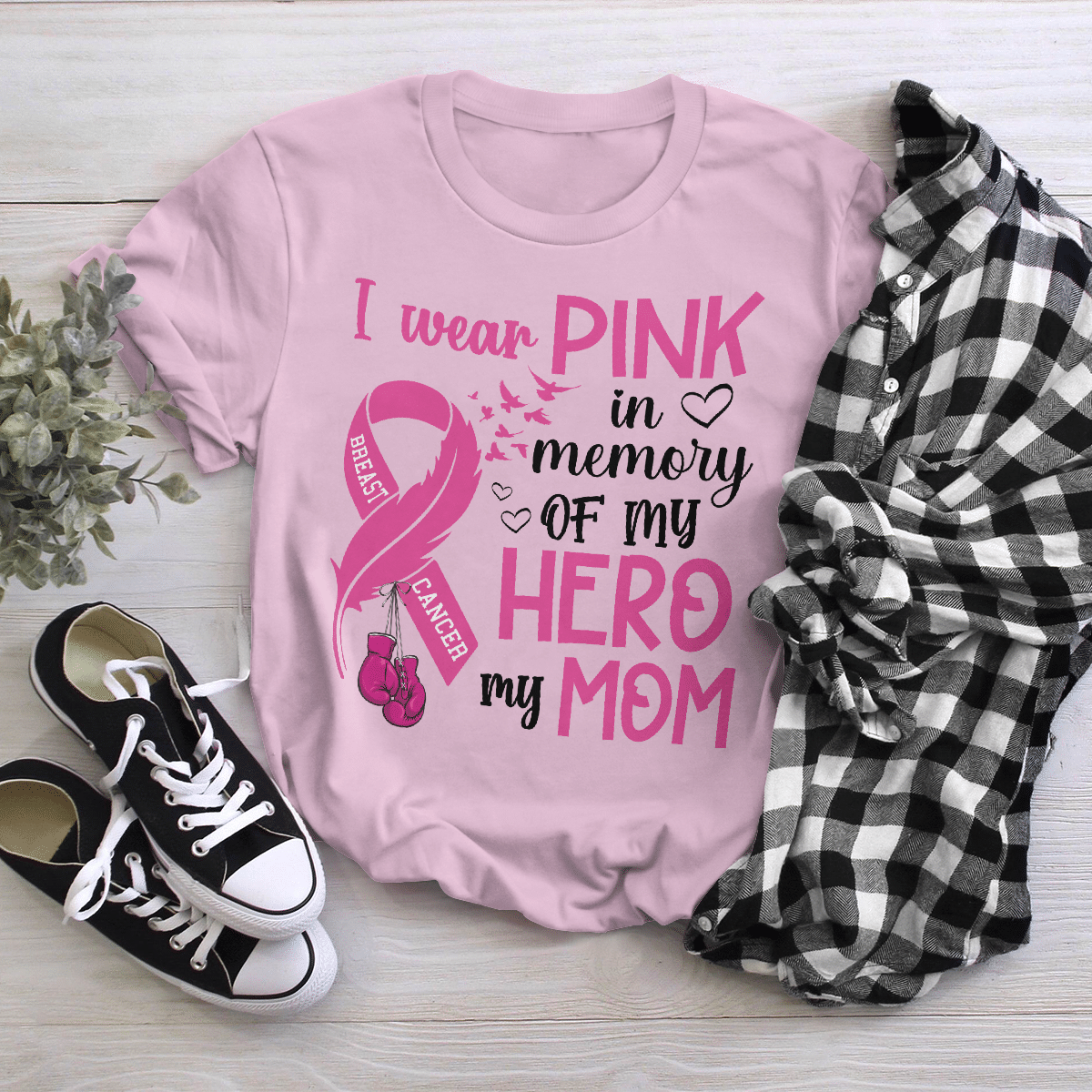 Breast Cancer Awareness Tshirt For Black Girl I Wear Pink In Memory Of My Hero My Mom Shirts