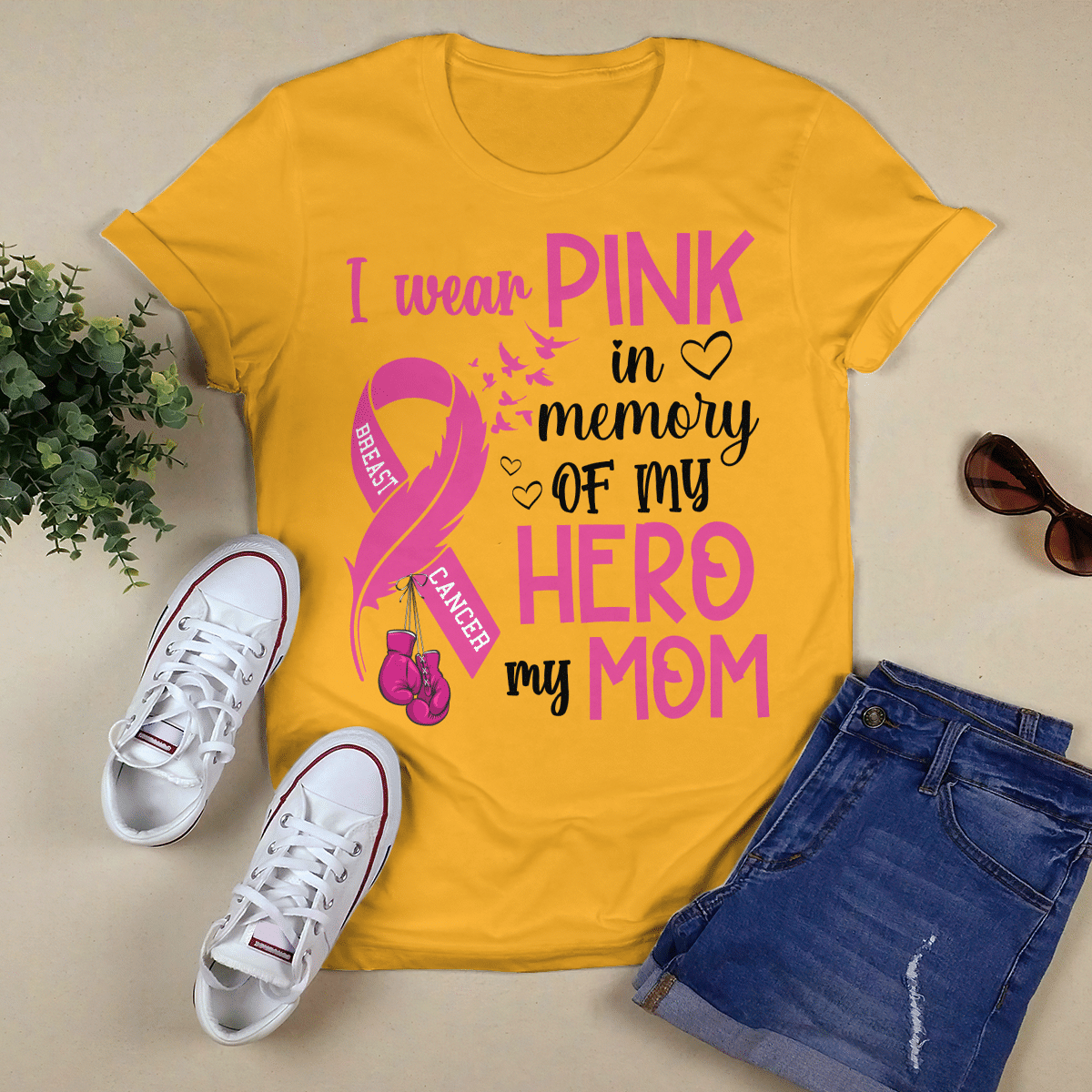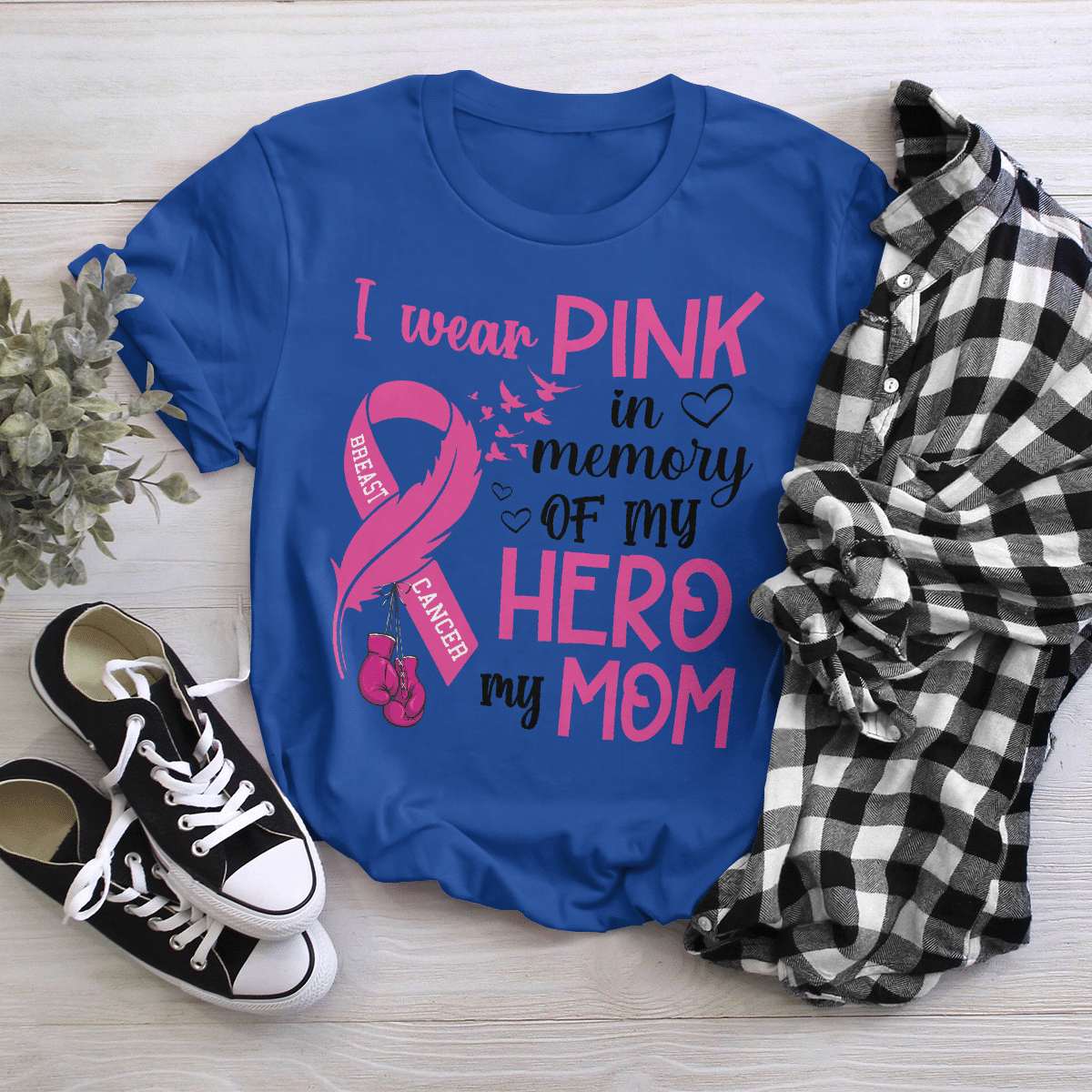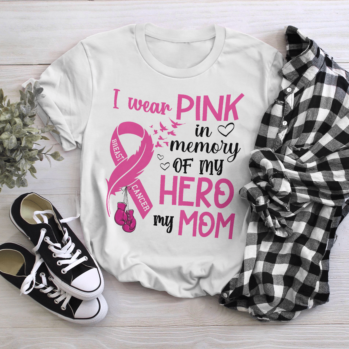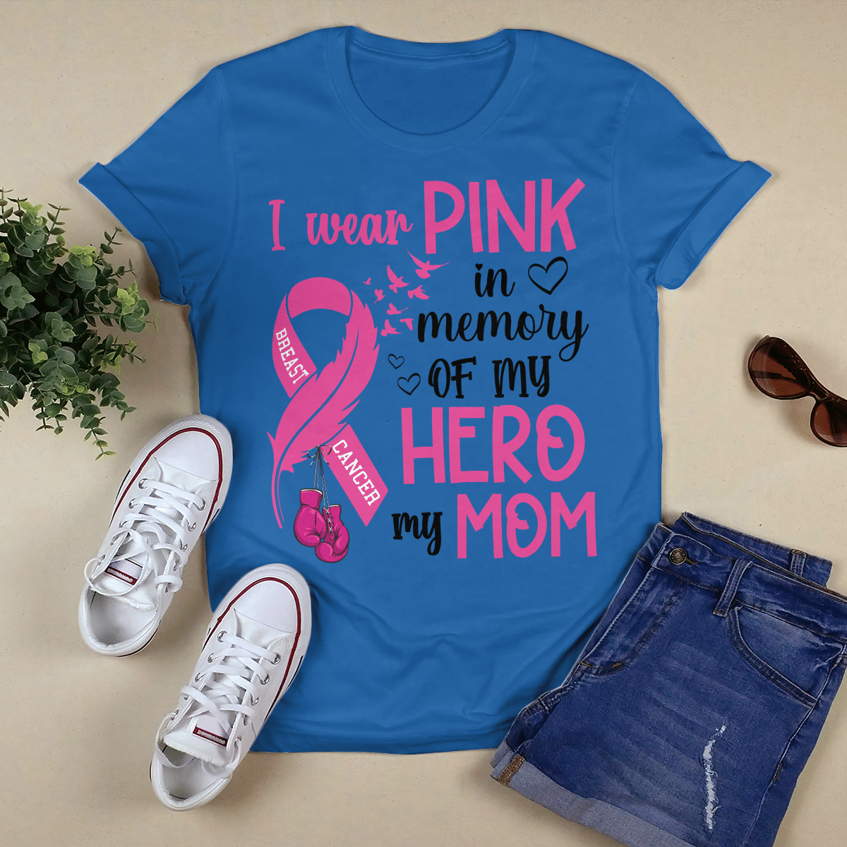 Breast Cancer Awareness Tshirt For Black Girl I Wear Pink In Memory Of My Hero My Mom Shirts
