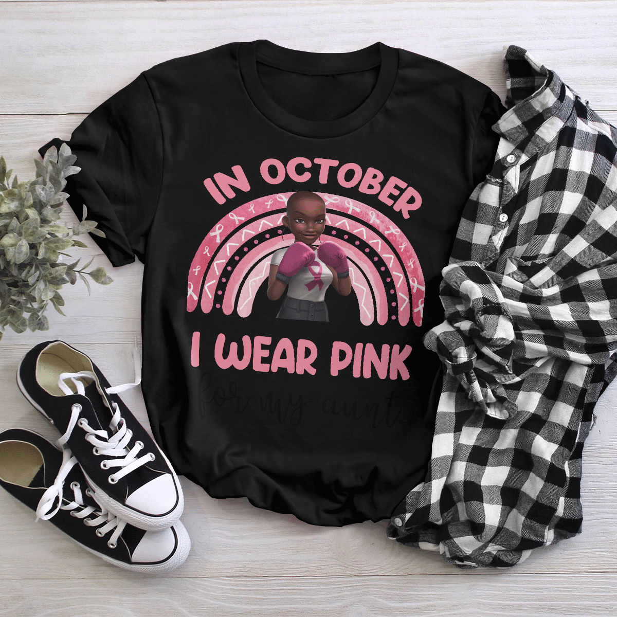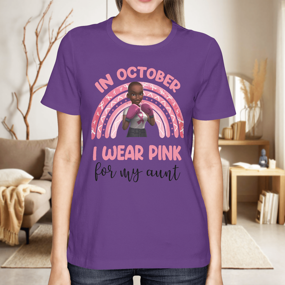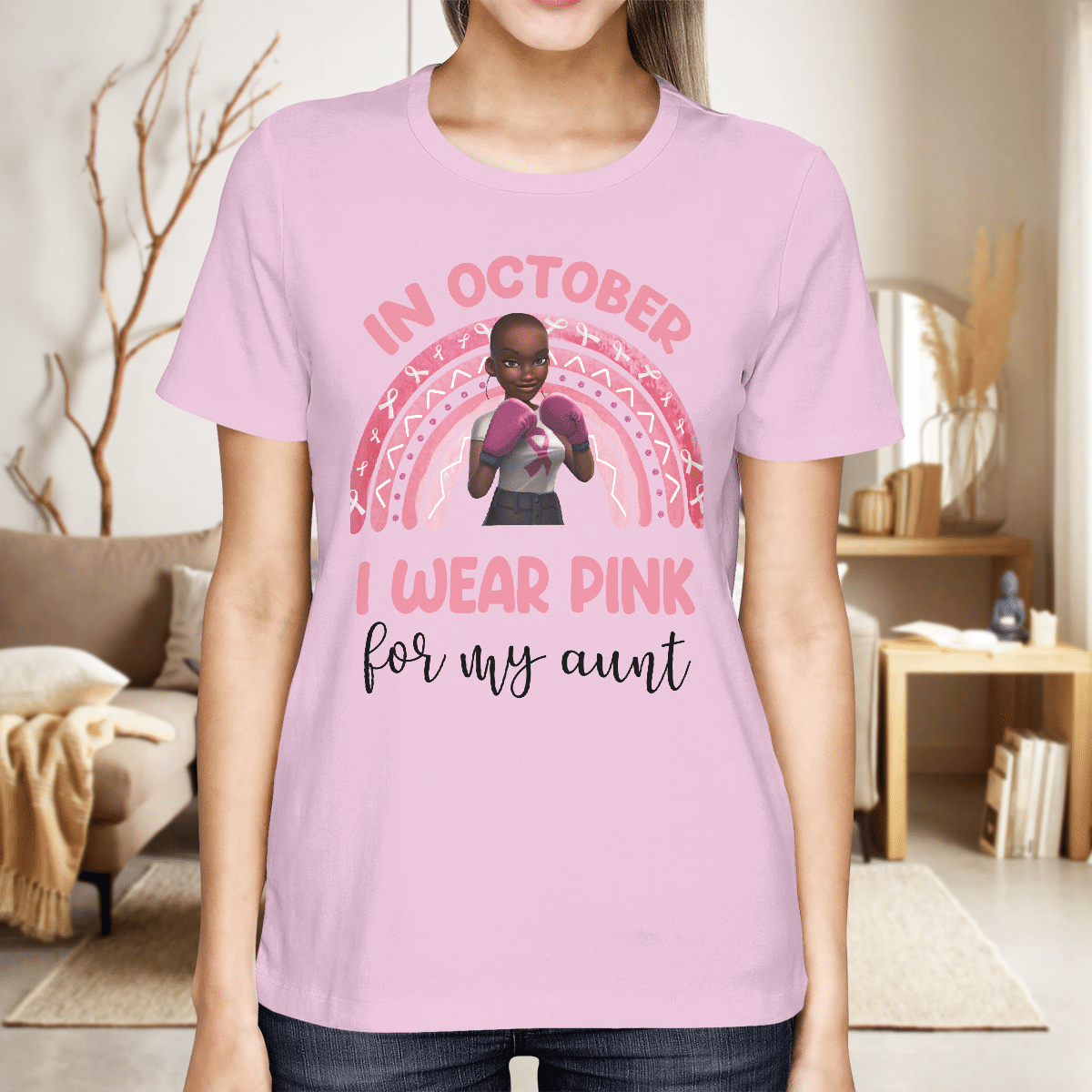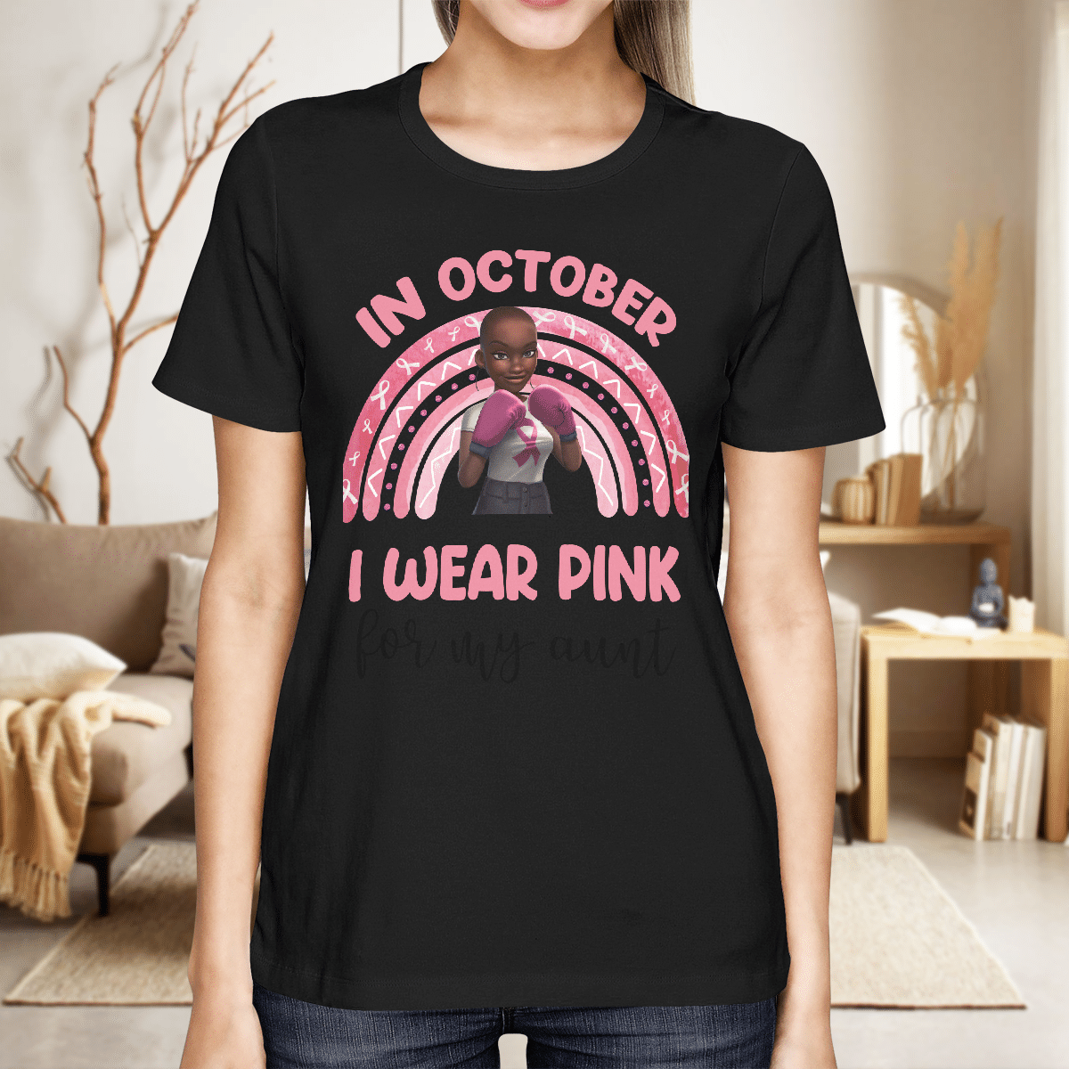 Breast Cancer Awareness Tshirt For Black Girl Is Fighter Shirts In October We Wear Pink For My Aunt Shirt