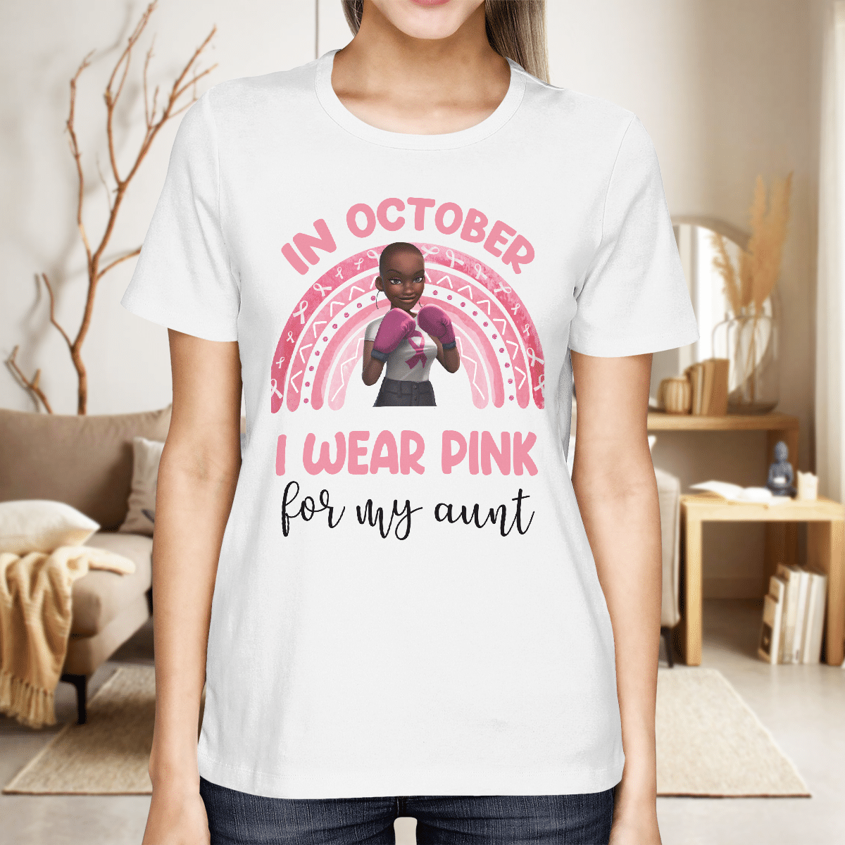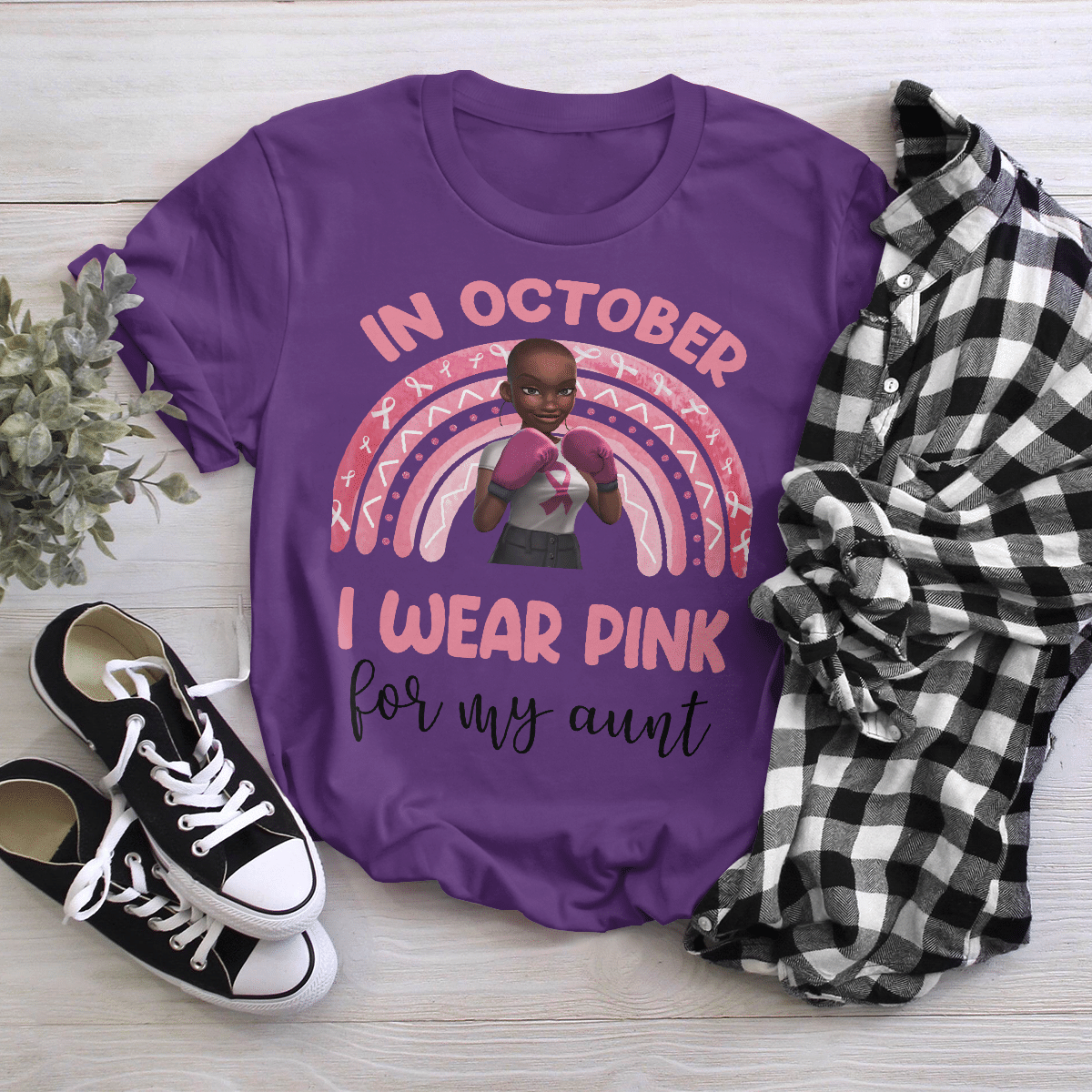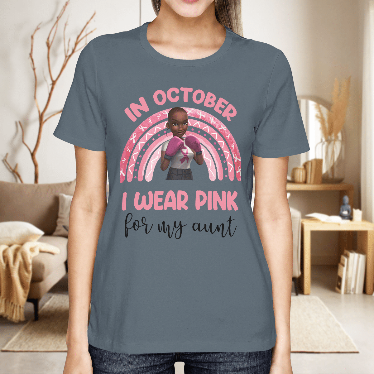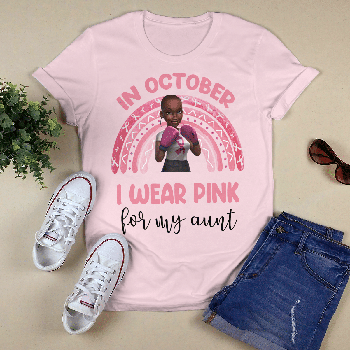 Breast Cancer Awareness Tshirt For Black Girl Is Fighter Shirts In October We Wear Pink For My Aunt Shirt