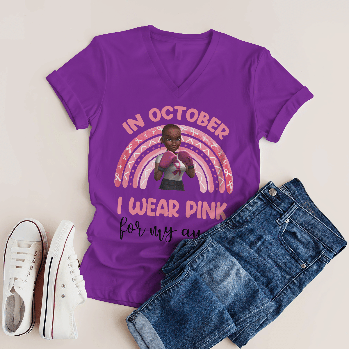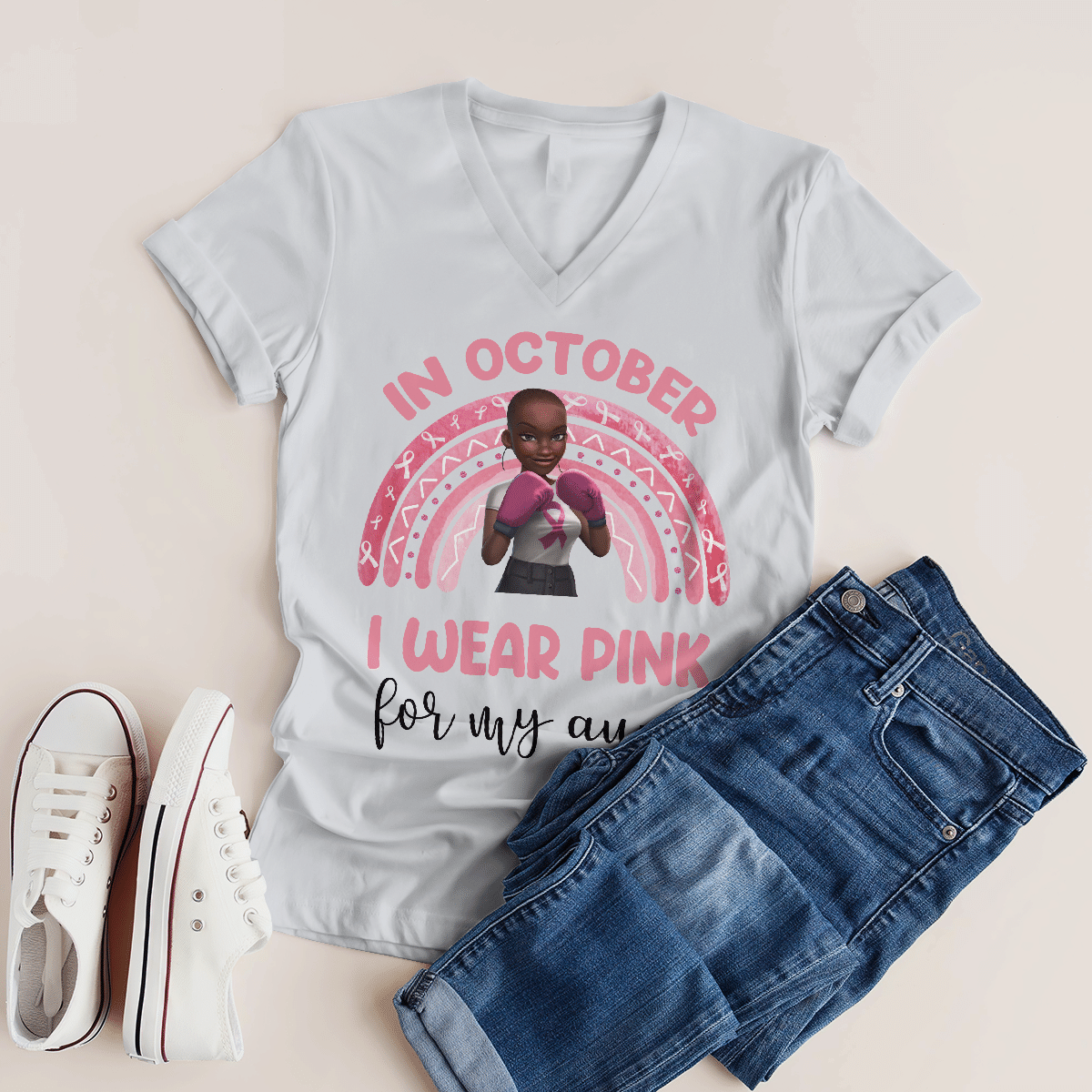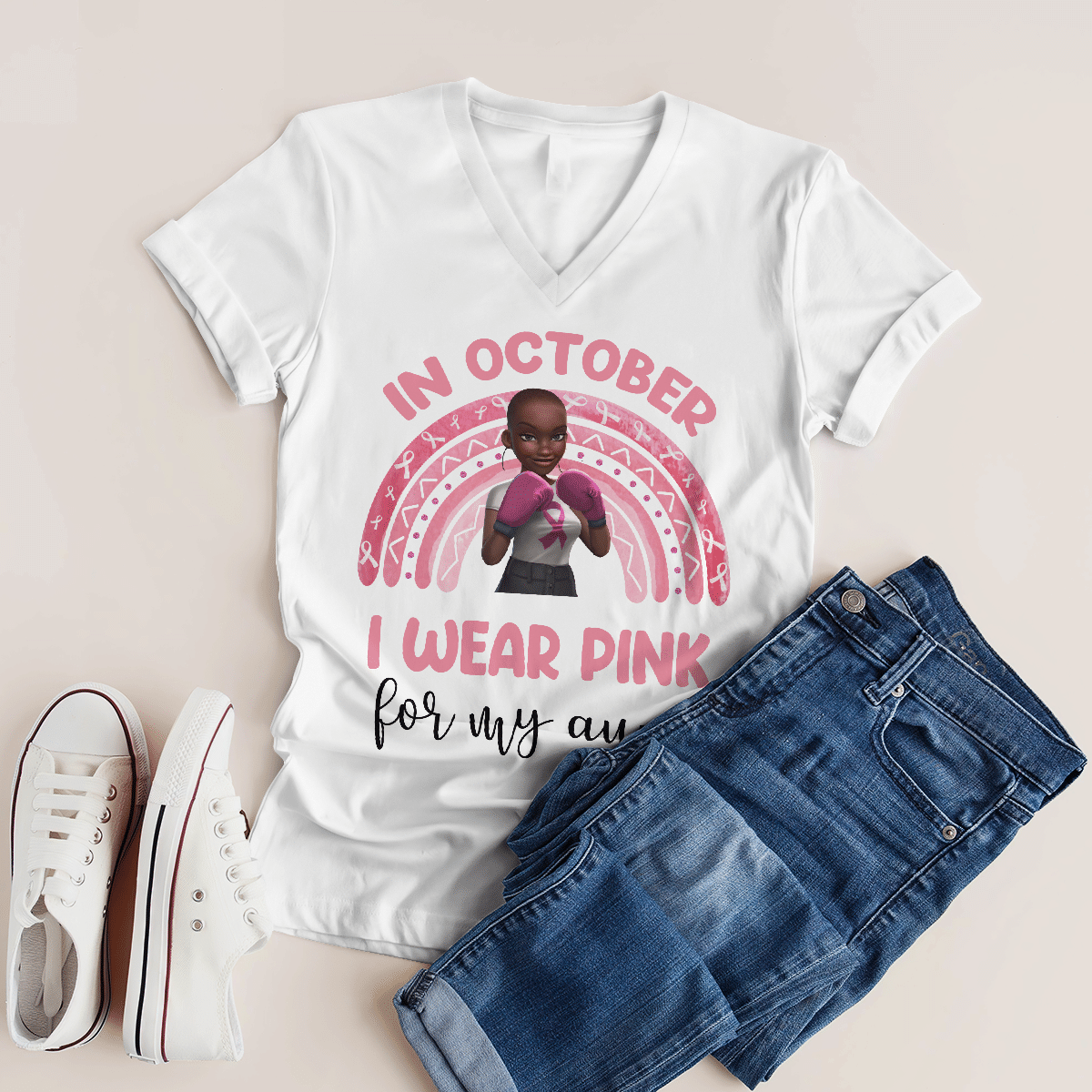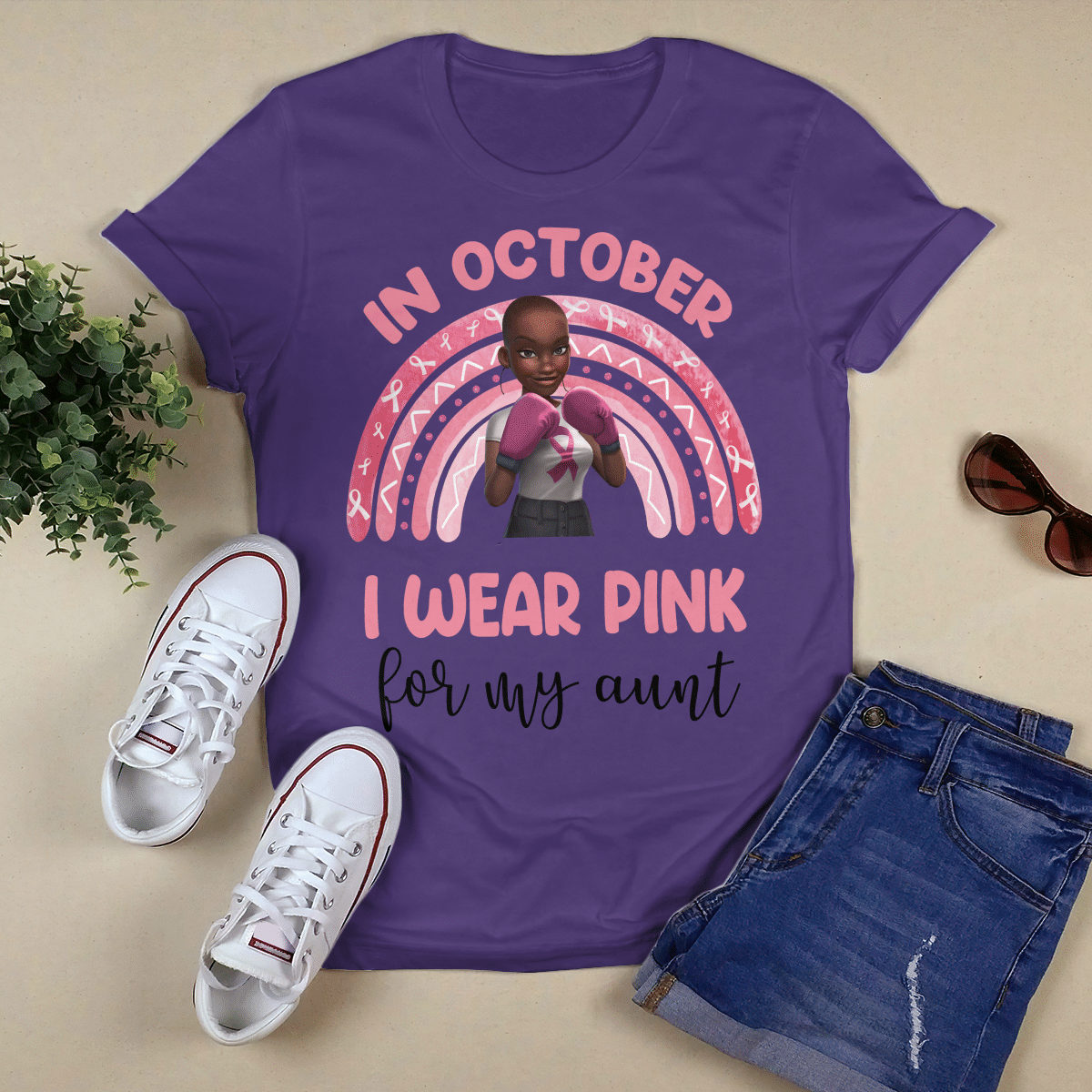 Breast Cancer Awareness Tshirt For Black Girl Is Fighter Shirts In October We Wear Pink For My Aunt Shirt