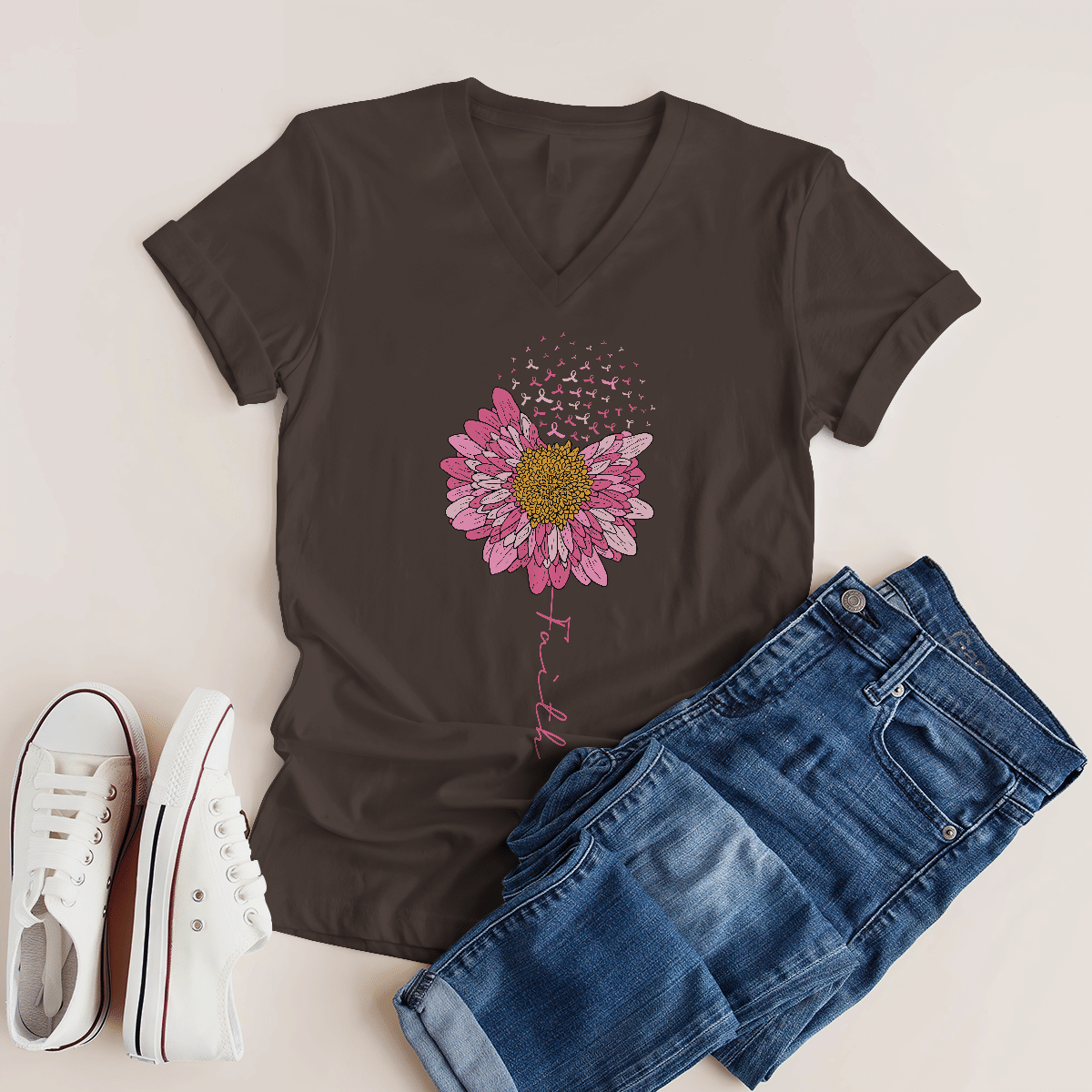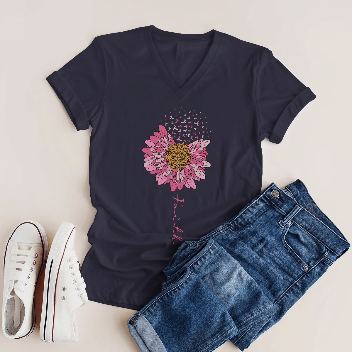 Breast Cancer Awareness Tshirt For Black Woman Shirt Faith Flower Shirt