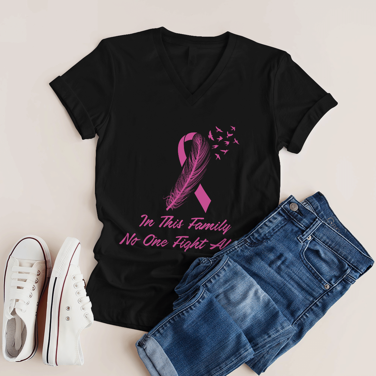 Breast Cancer Awareness Tshirt For Black Woman Shirt In This Family No One Fight Alone Shirt