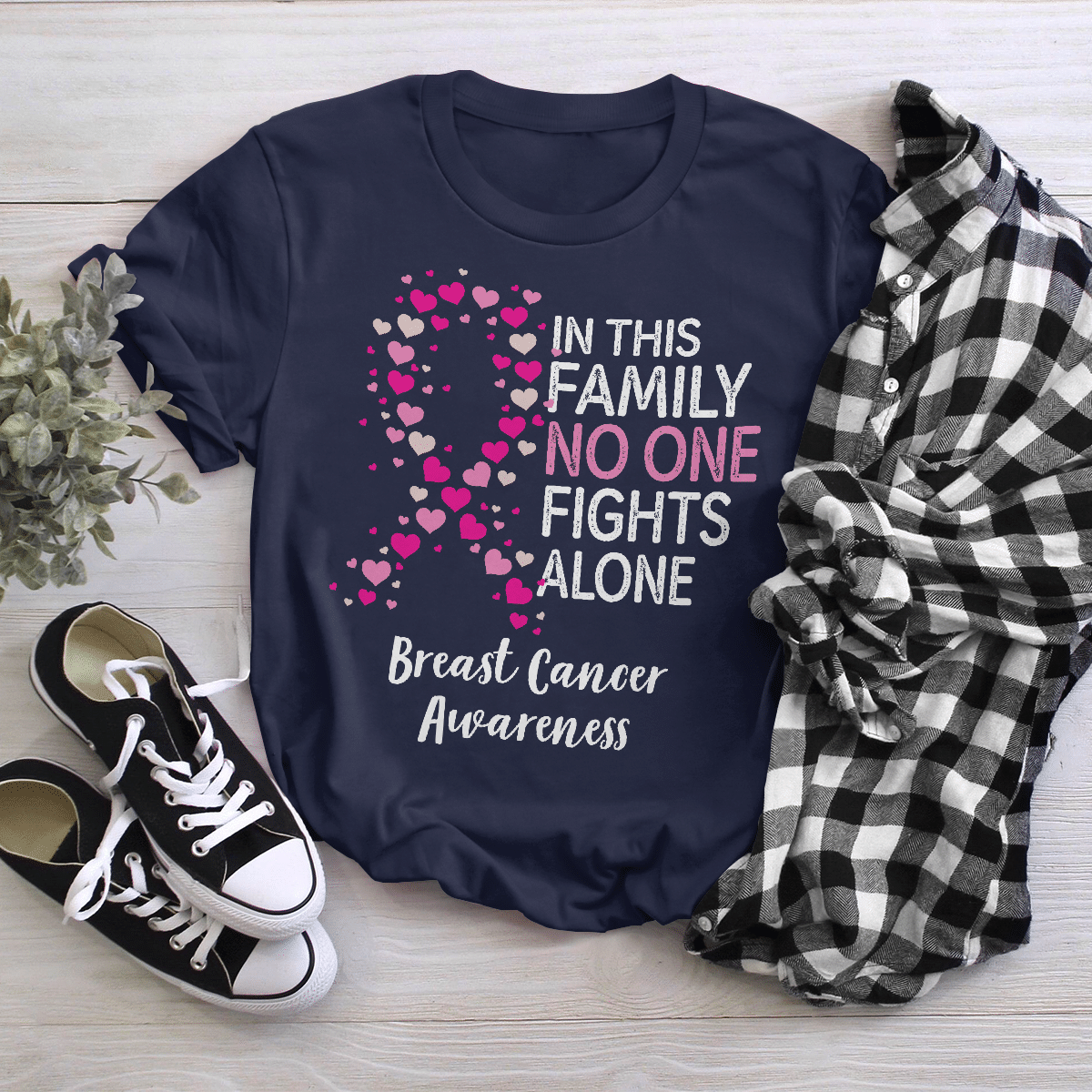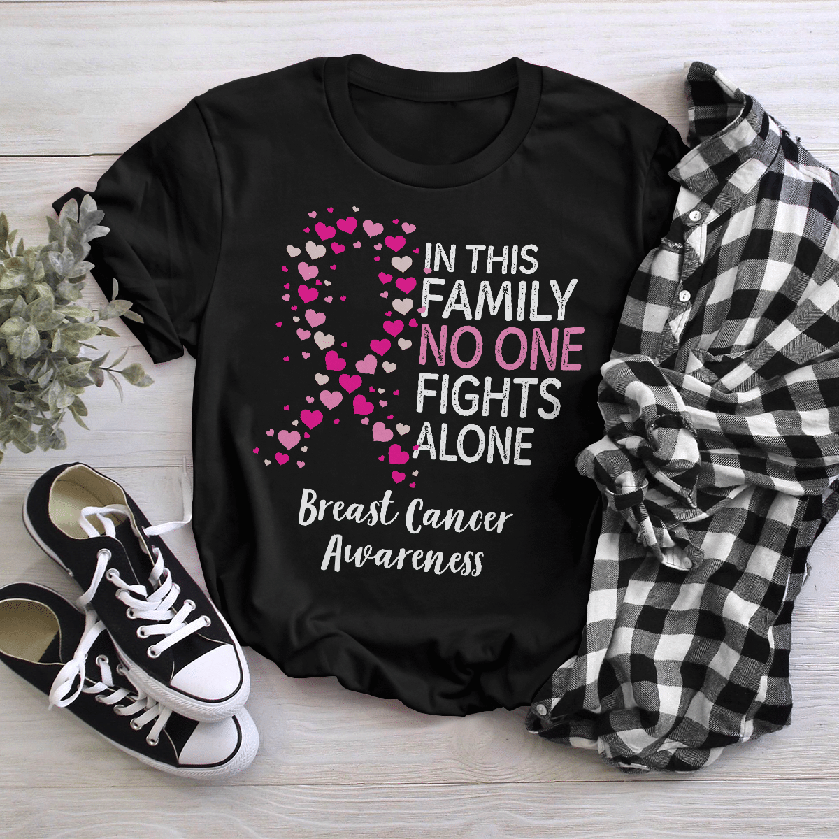 Breast Cancer Awareness Tshirt For Black Woman Shirt In This Family No One Fights Alone Shirt