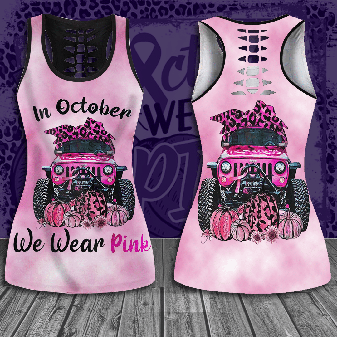 Breast Cancer Awareness ”We Wear Pink” Hollow Tank Top & Leggings Set 240821002.Cta