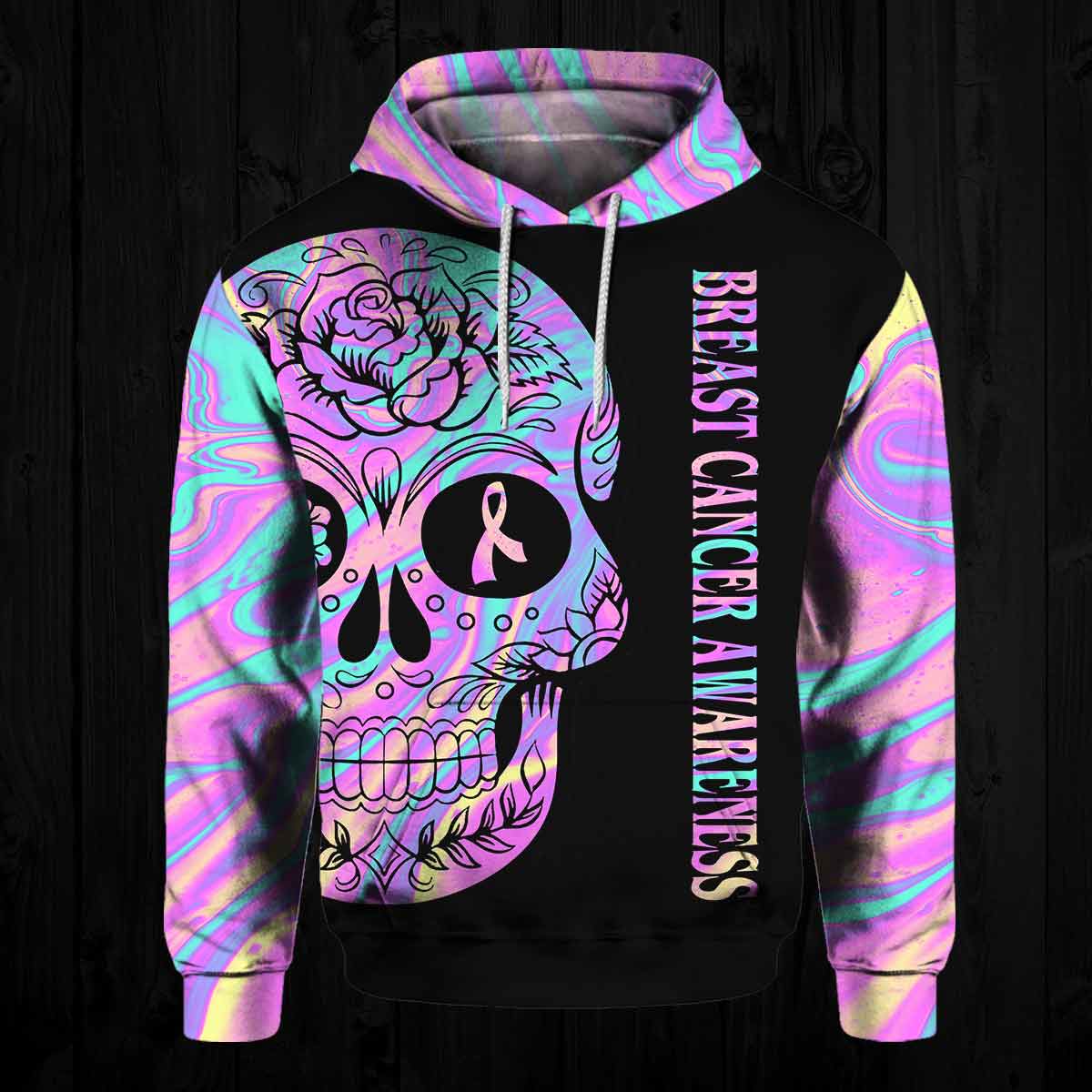 Breast Cancer Hoodie In October We Wear Pink Skull Breast Cancer Awareness Hoodie