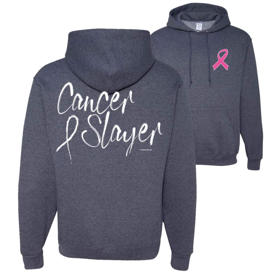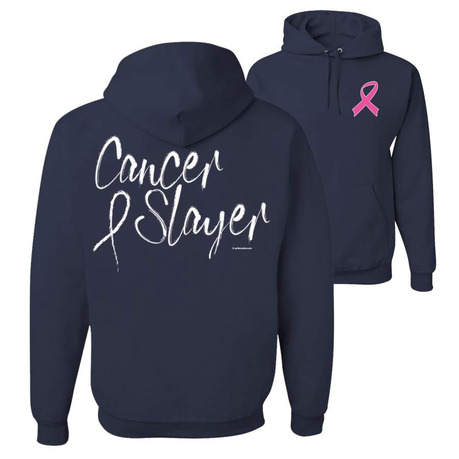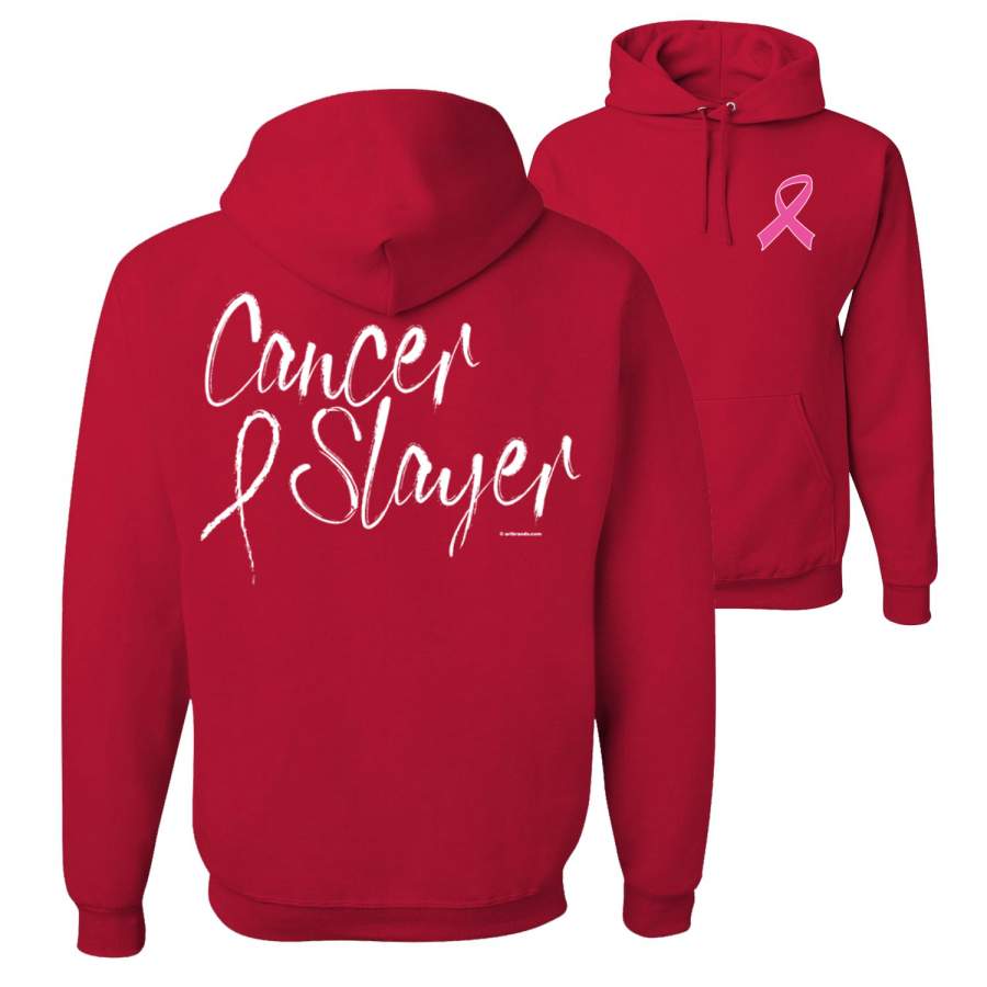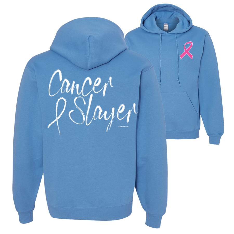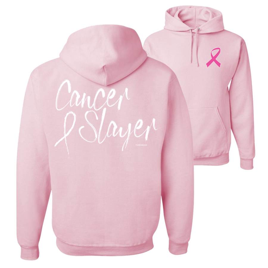Cancer and Slayer Breast Cancer Awareness Front and Back Unisex Graphic Hoodie Sweatshirt