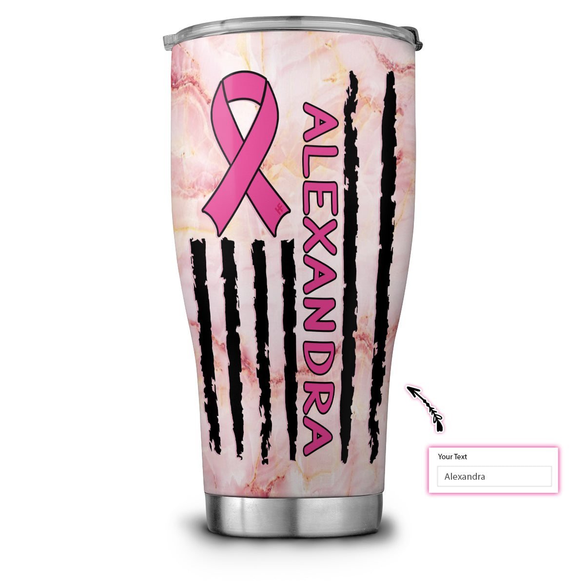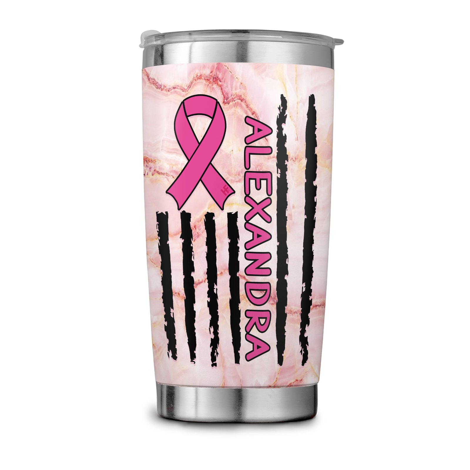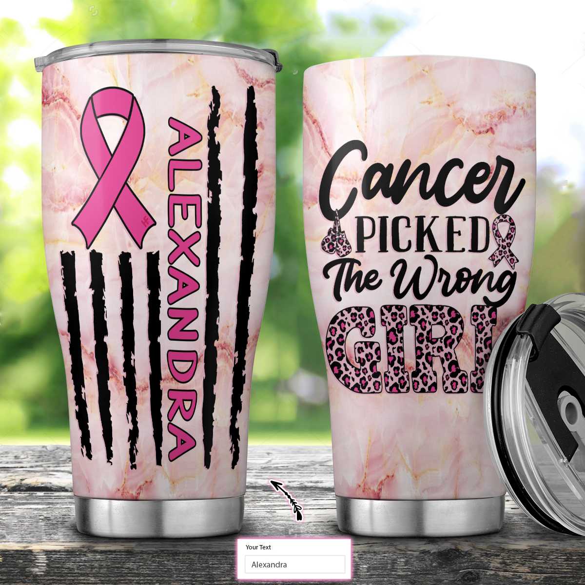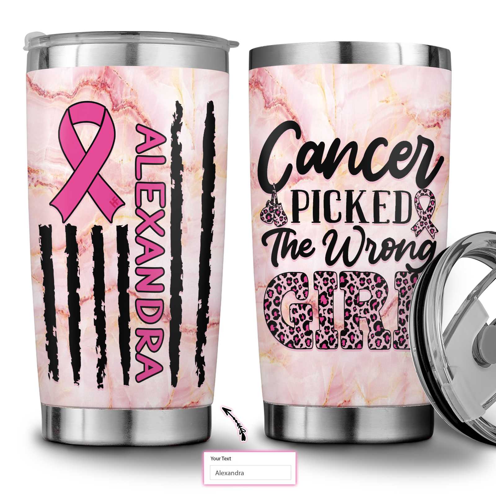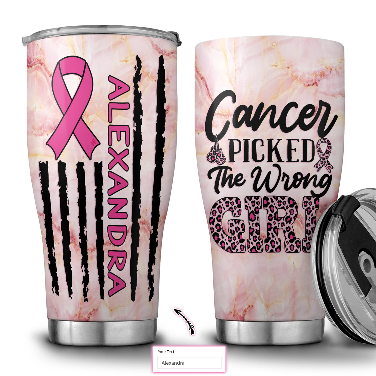Cancer Picked The Wrong Girl Elegant Pink Breast Cancer Awareness Custom Stainless Steel Tumbler
